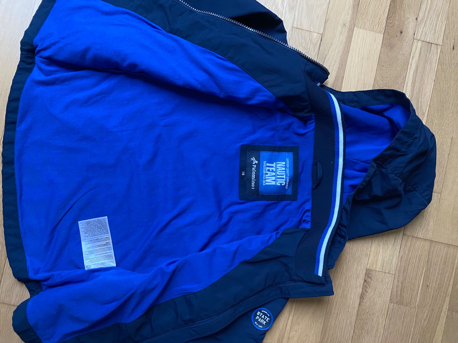 Zvonku šuštiaková, vo vnútri mäkkučká bunda. Napriek tomu, že ju syn rád nosil, nevidieť žiadne poškodenie. Veľkosť písaná 5/6 rokov. Na patentoch miernučné žmolky.