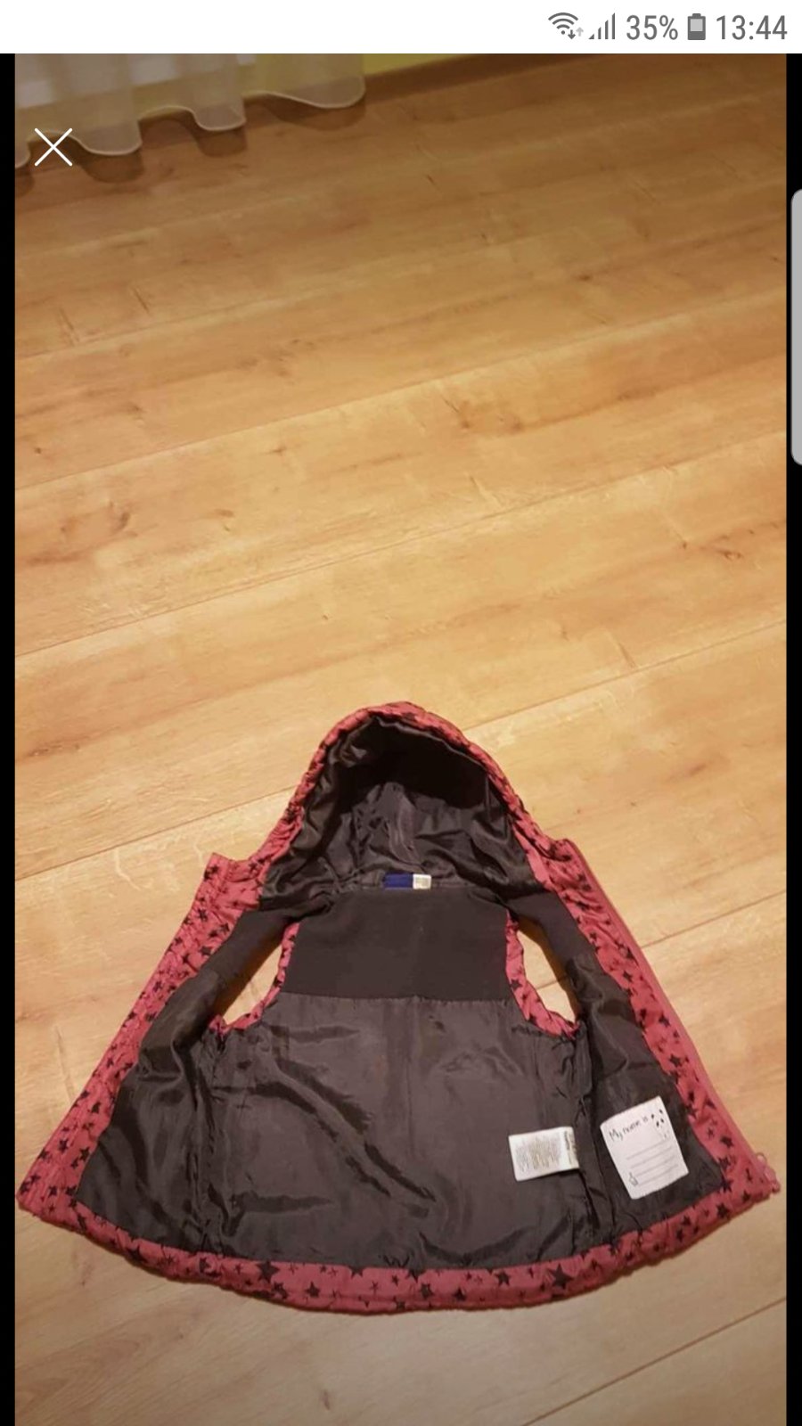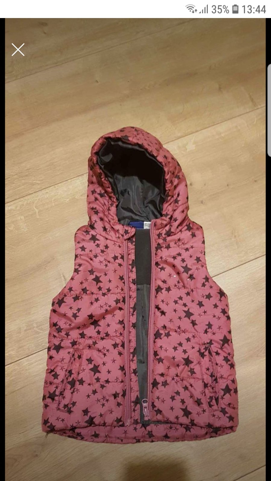 Vesta je zateplena flisom s kapucnou. Veľ.98/104 pod pazuškami - 2x33cm