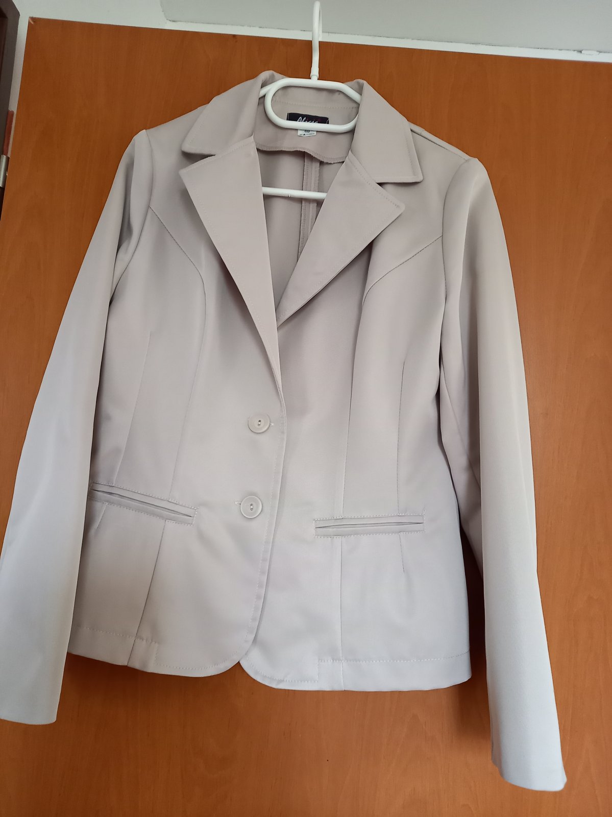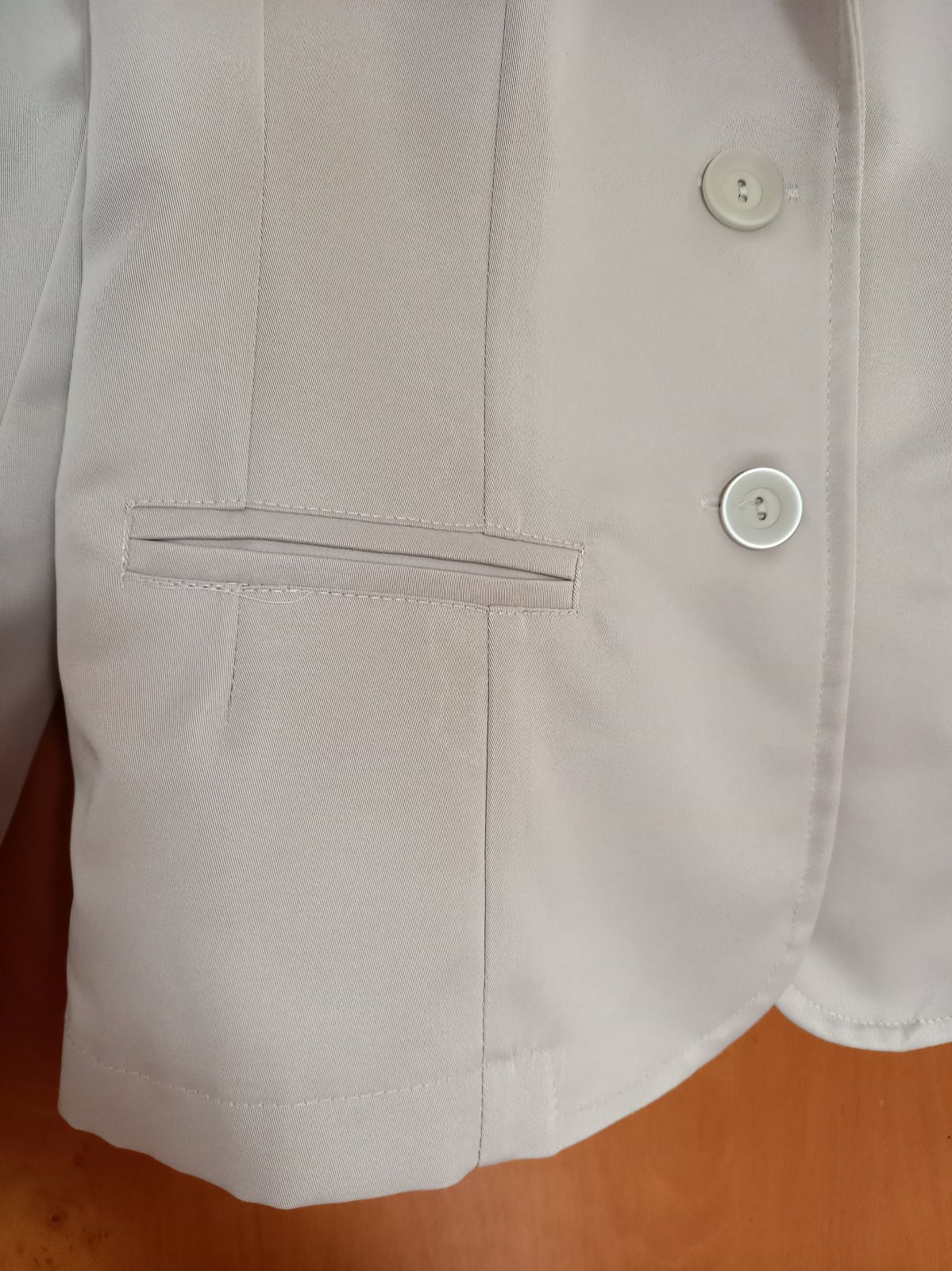 Krásne sako s vysokym podielom ľanu. Je krémové a ma velmi jemne zlaté odlesky. Na prvý pohľad pôsobí draho a kvalitne. V stave bez chybičky Rada premeriam