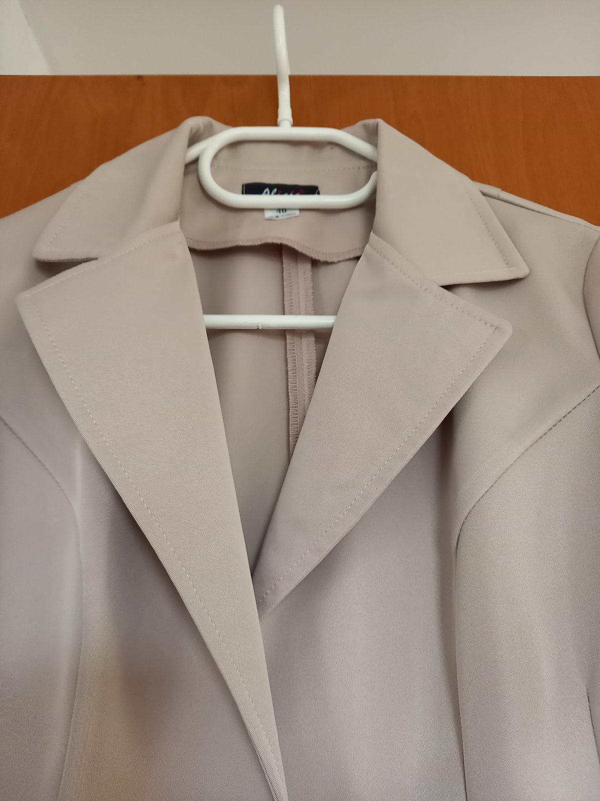 Krásny prechodný kabátik v béžovej farbe v Top Stave😎 Zapínanie na zips a patenty. Vo vnútri je šnúrka okolo pásu.
