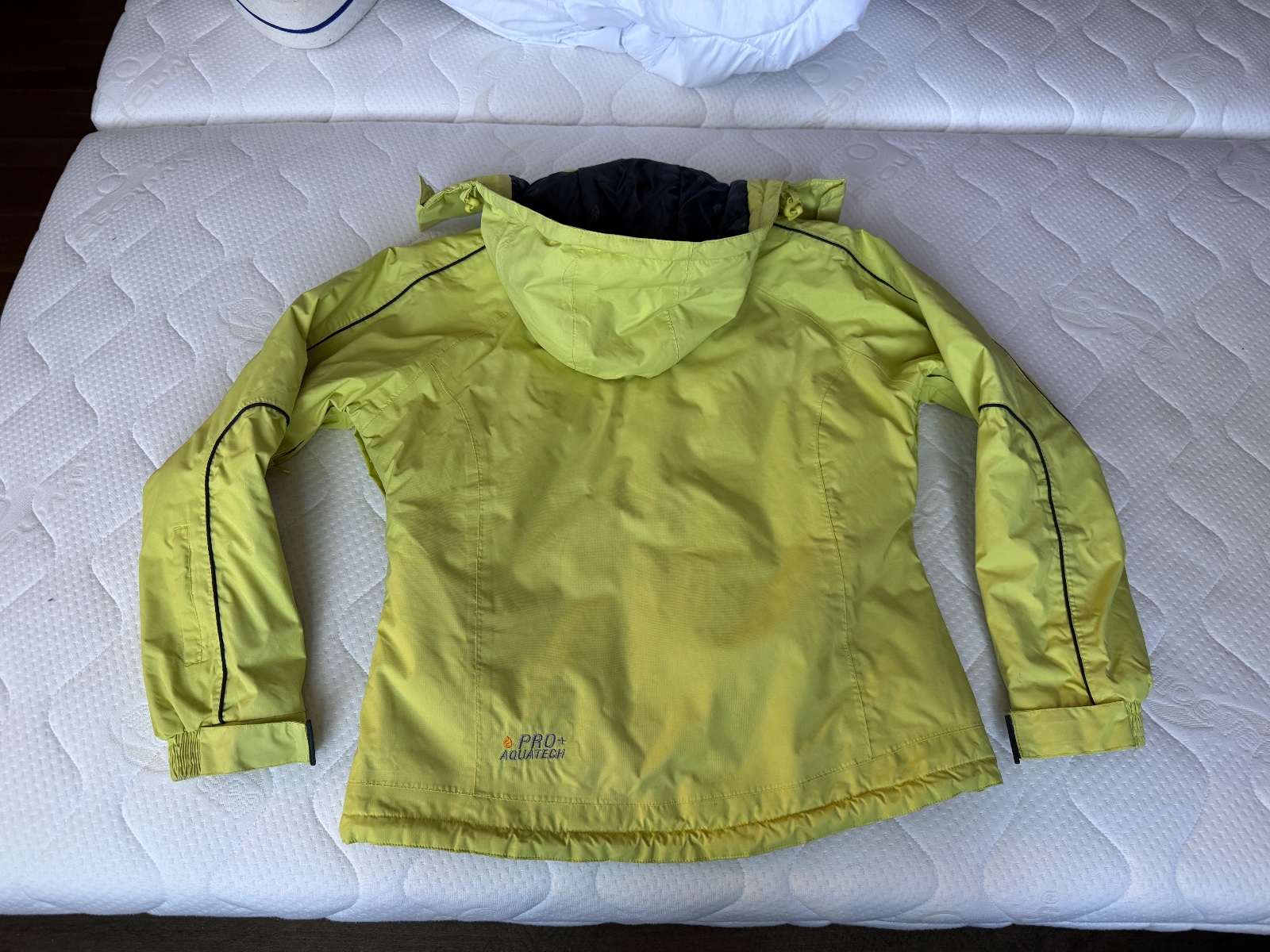 Bunda na teplejšiu zimu. Kapucňa sa dá dať dole. Píše veľkosť XS ale podľa mňa väčšia, aspoň to M minimálne. Rozmery na foto. Našla som fľaky na 2 miestach, viď foto.