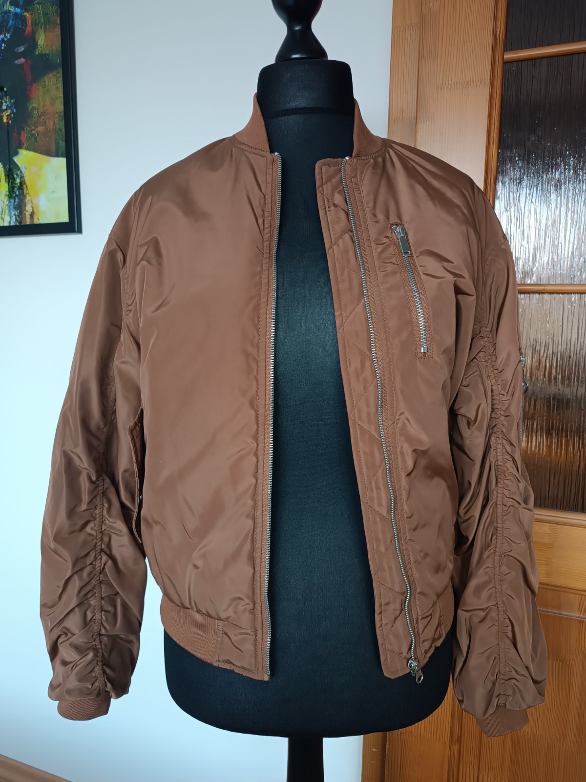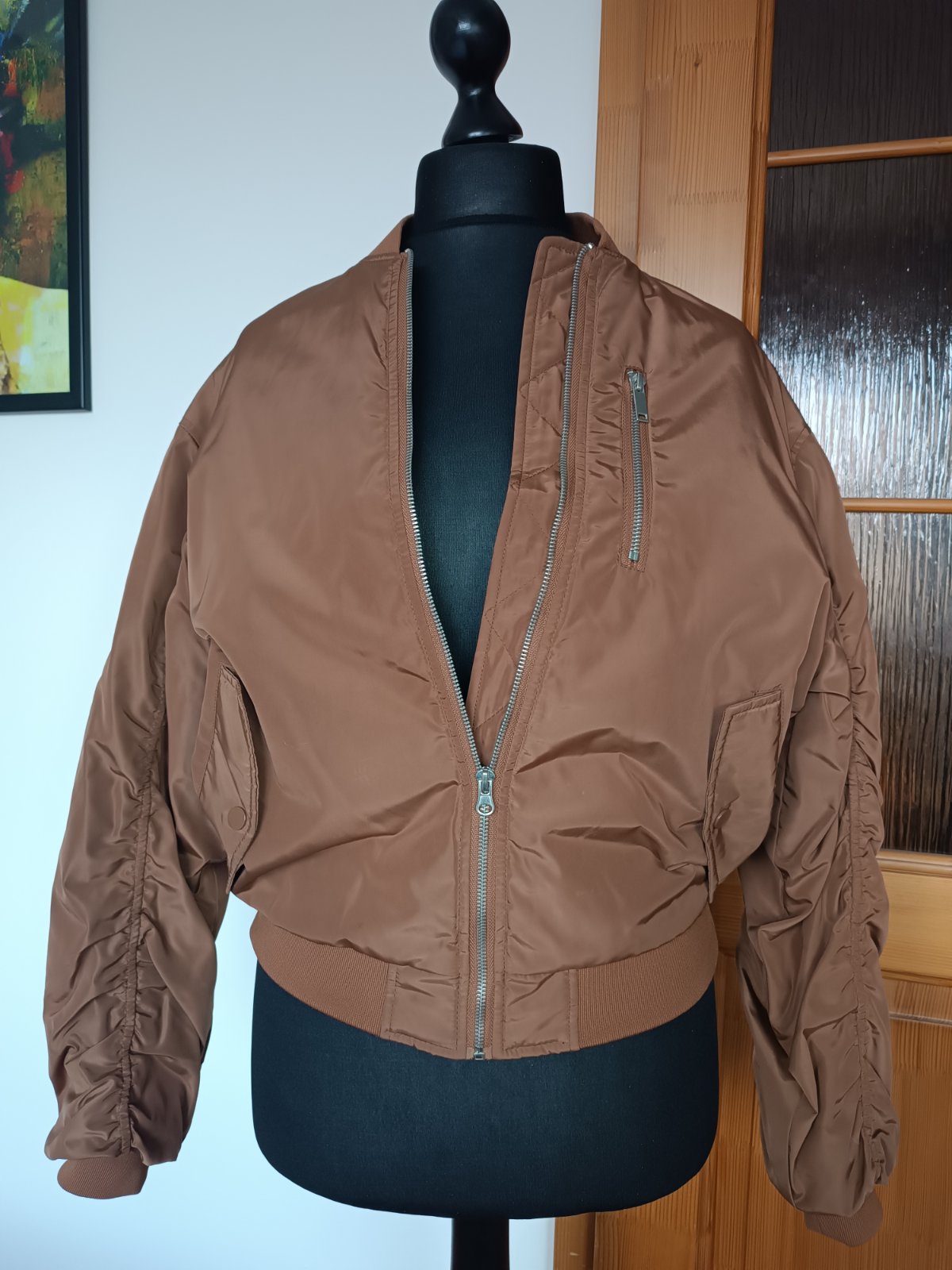 Bombera ako nova obvod hrude 57cm, obvod pása 46cm, dĺžka bundy 64cm dĺžka rukáva 75cm