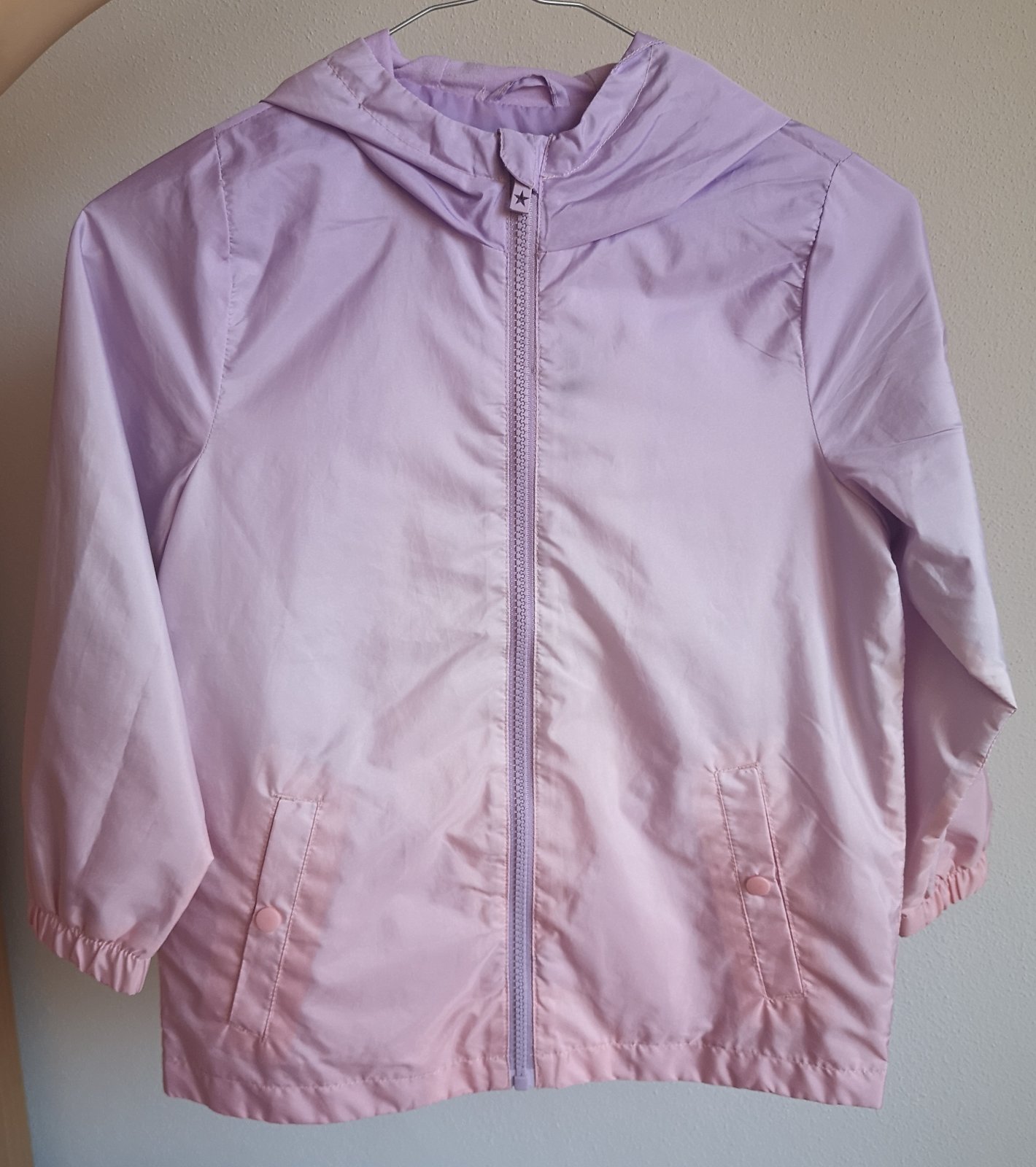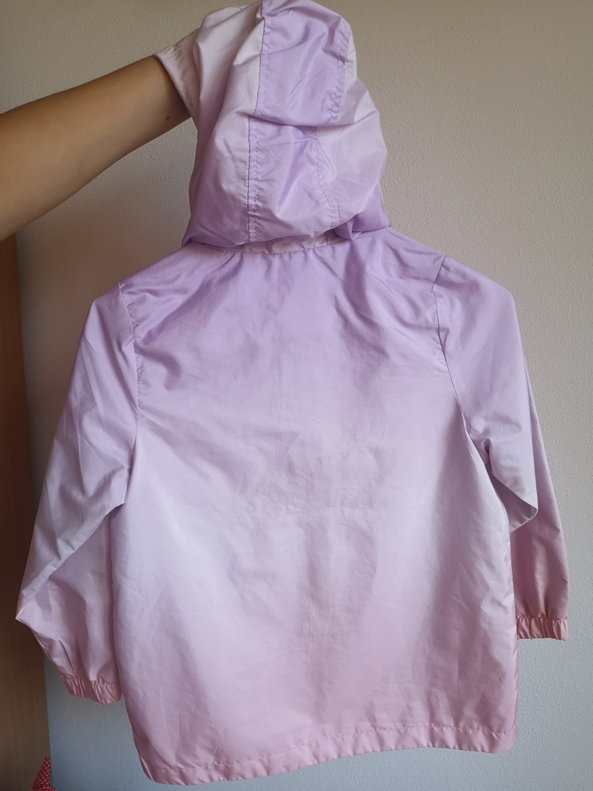 Je vo výbornom stave, bez poškodenia. Bola nosená len príležitostne mladšou dcérou na prechádzku s rodinou. Mali sme ešte jednu podobnú, staršiu vetrovku, ktorá bola nosená častejšie.