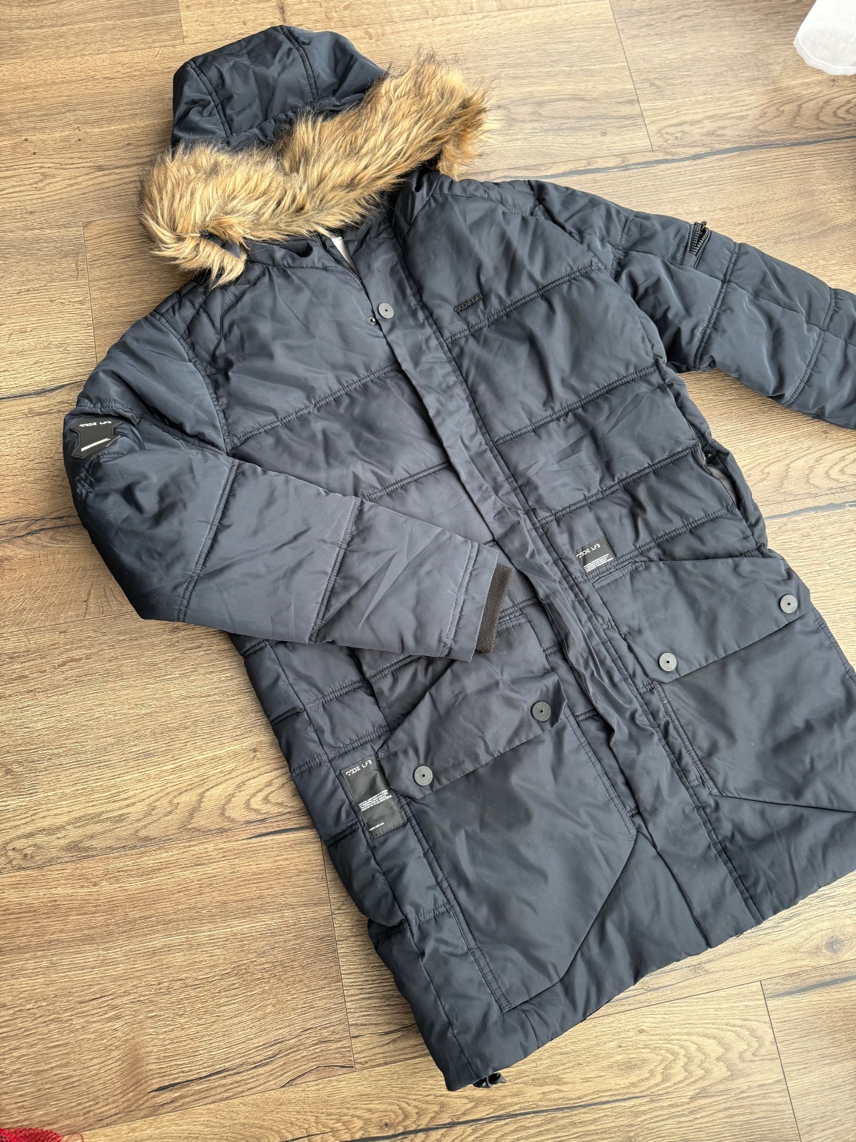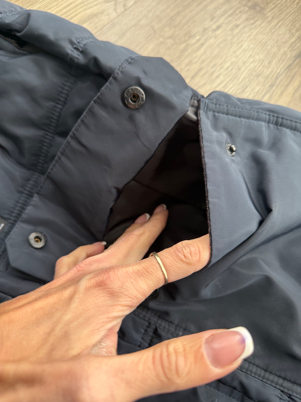 Malo nosena, zimná, ma vnútorný zapinaci pas, Jedina chyba je odtrhnuty kusok podsivky. Myslim ze sikovna krajcirka by to vedela zašiť. Veľkosť písaná L ale asi je skôr XL Pod pazuchami 66cm Rukav...
