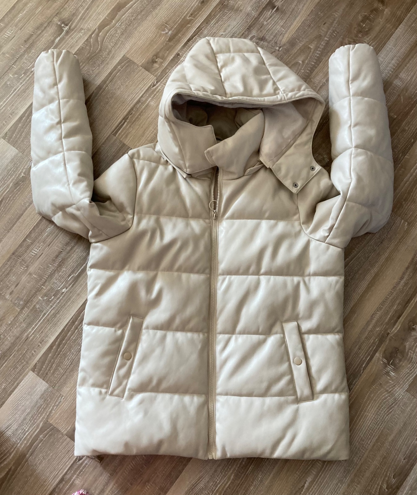 Krátka Koženová bunda House Brand,vel.L.kapucňa sa dá odopnúť.v peknom stave.akurát na jednom rukáve ako keby oškreté(na foto pekne vidieť).krásna..plus pošta.