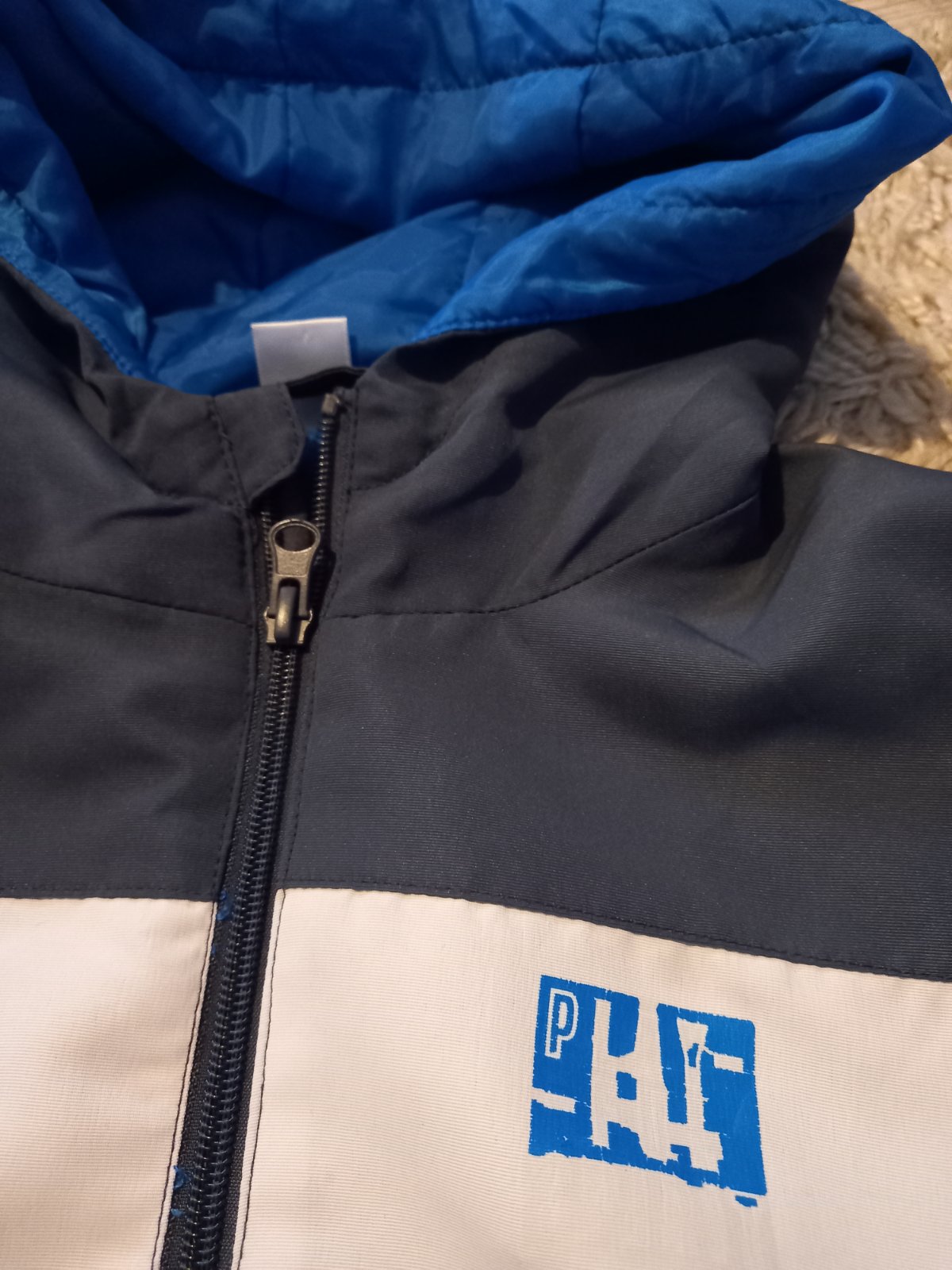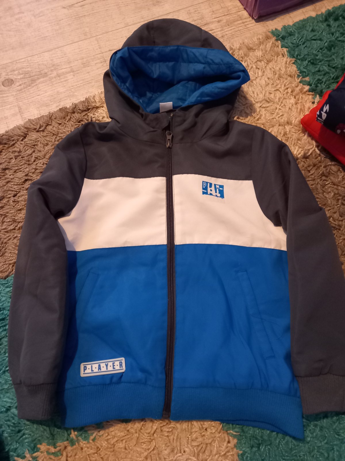 Dobrý noseny stav,na obidvoch rukávoch malá dierka,je nafotené,syn nosil aj na jeseň bez kapucne ,v zime s ňou, dĺžka 56cm, šírka 46cm, dĺžka rukáva od krku 57cm, cena 5€+poštovné