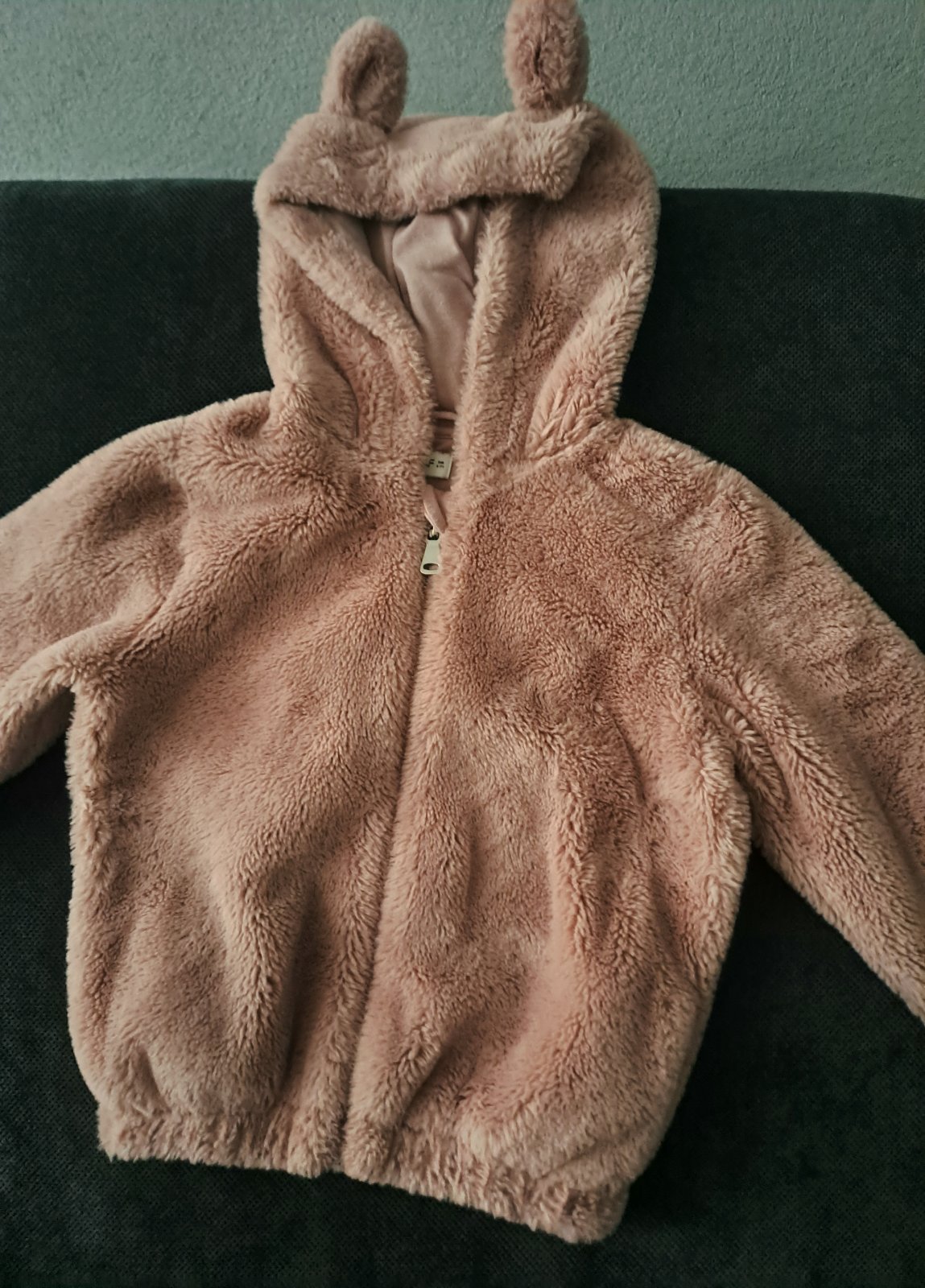 Je to veľmi teplá bunda s ušami. Zips ma kvalitný strieborný ma aj vačky na ruky kto ho je vysoký sadne možno už na 116 dlzka 45
