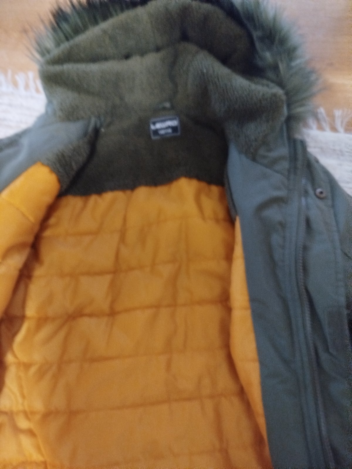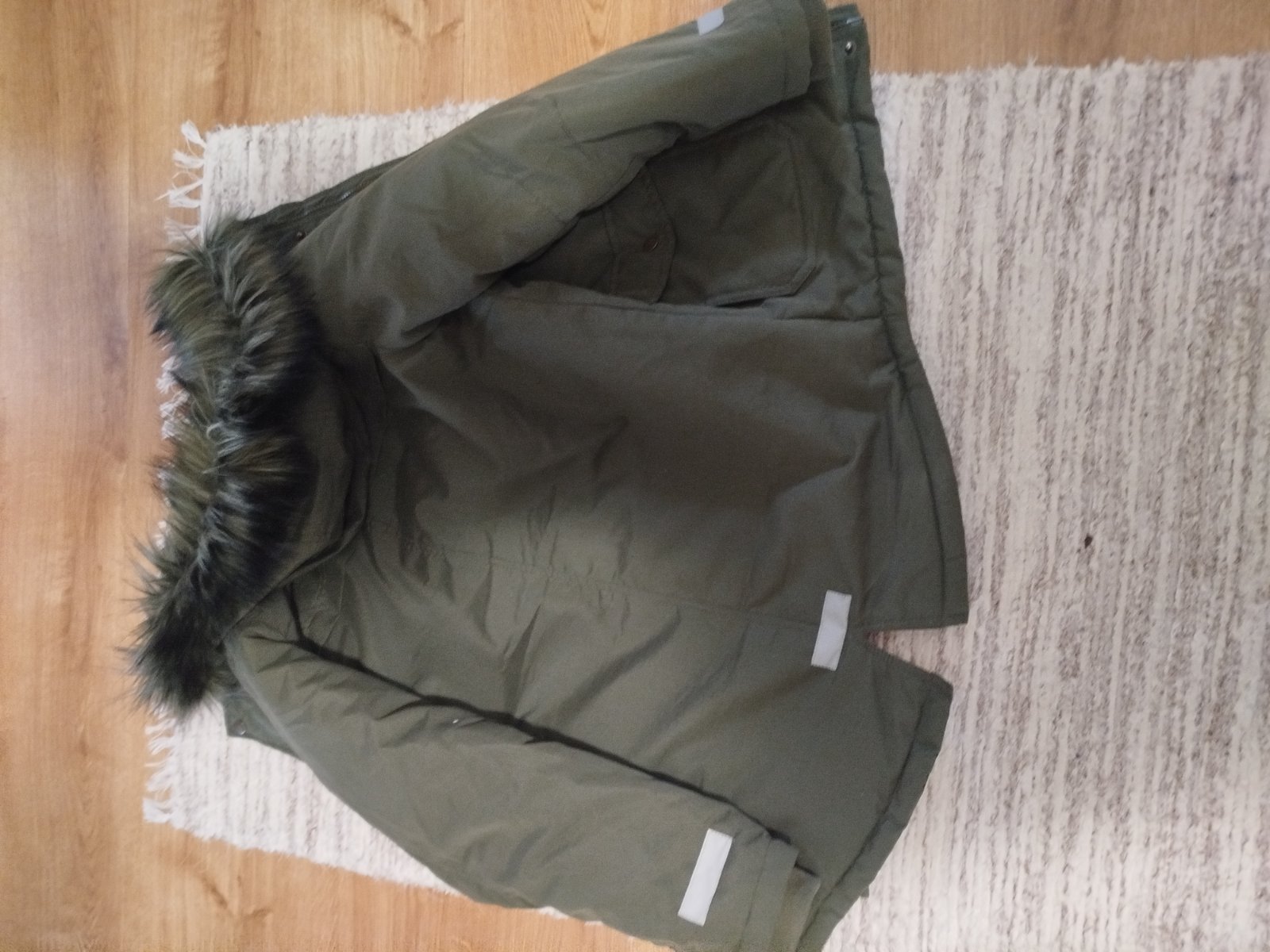 Noseny dobry stav. Pod lavou pazuchou zasity rozparany sev, nie je to vidiet. Odnimatelna kapucna