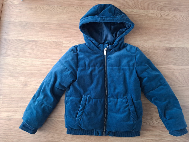 Nosena vetrovka velkost 116 vo vybornom stave. Je teplejsia, prijemny mäkky material. Ale nie je vhodna do snehu. Na spodnom pase vidno zmolky, inak stale vyborny stav.