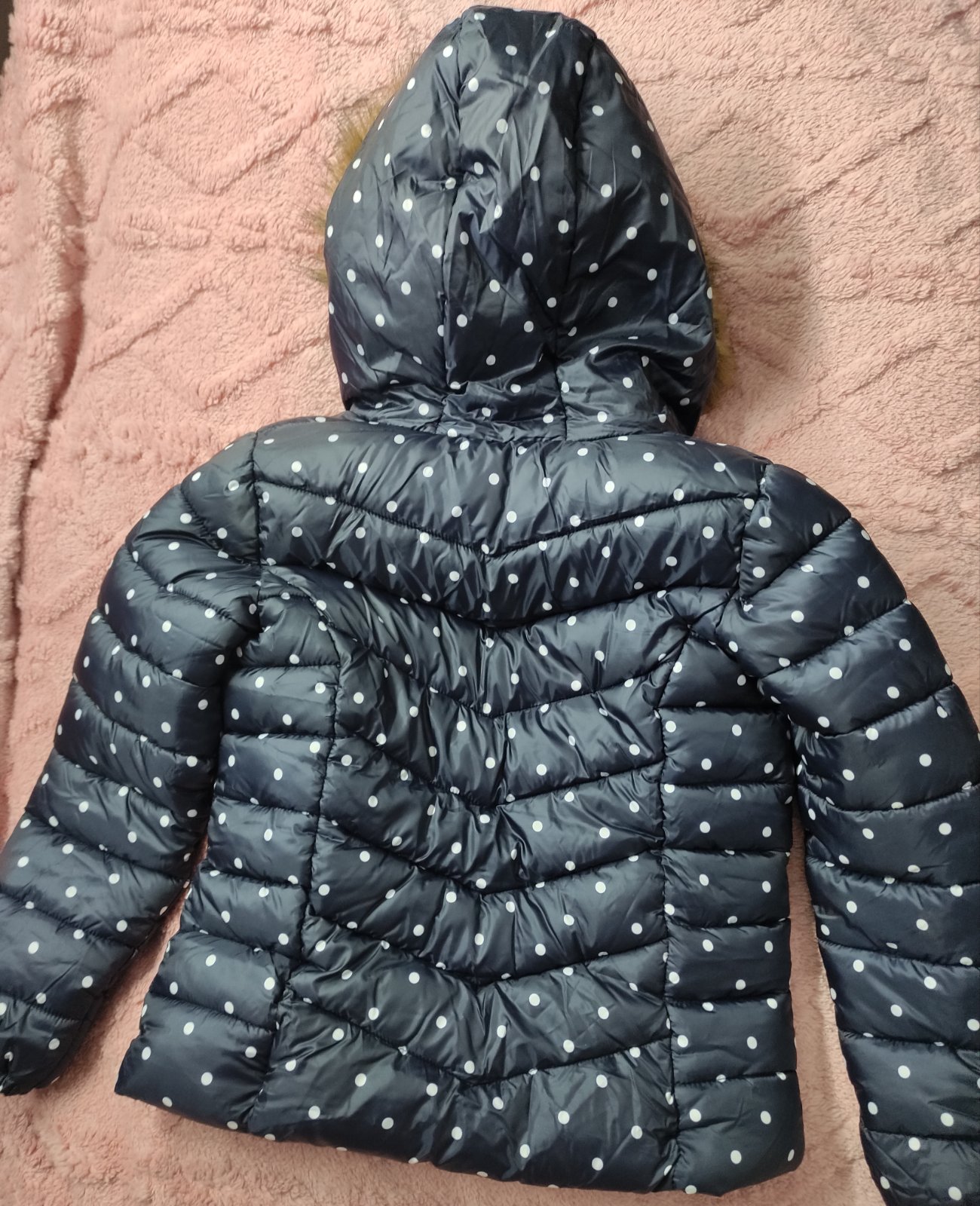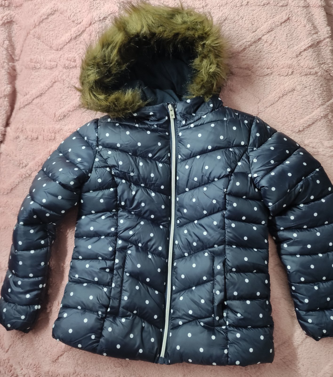 016.F&F dievcenska zimna vetrovka vo velkosti 9-10 rokov,kapucna s kozušinkou,ako nova.Dlzka je 53cm,dlzka rukava od krku je 57cm a sirka v podpazusi je 42x2cm