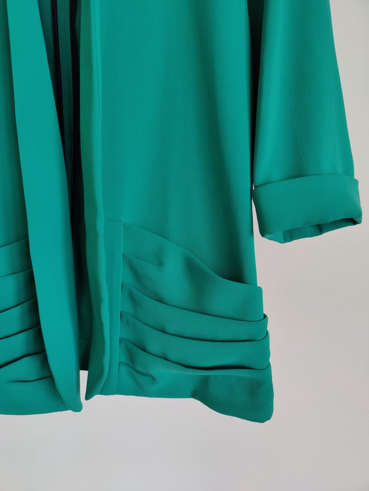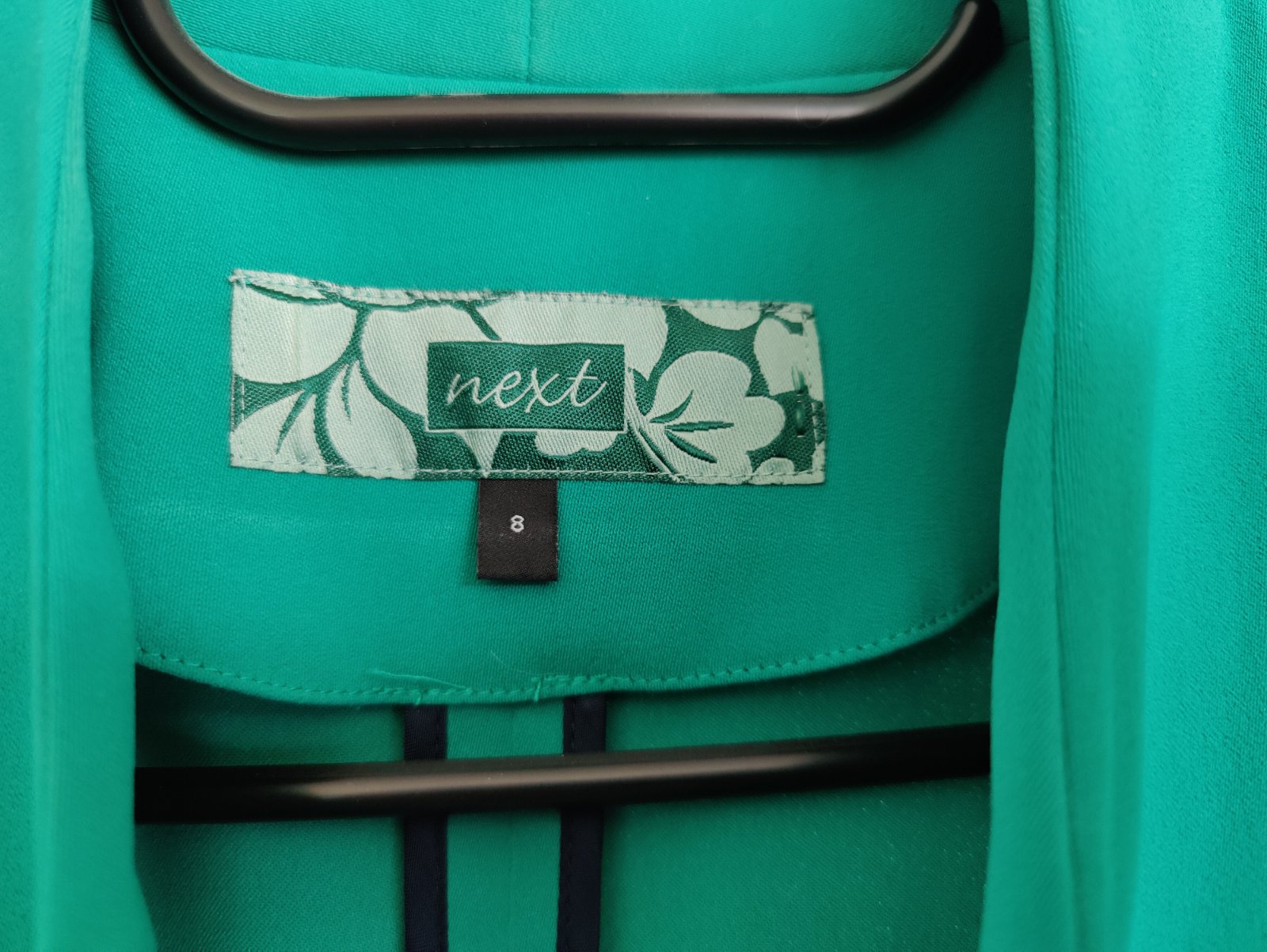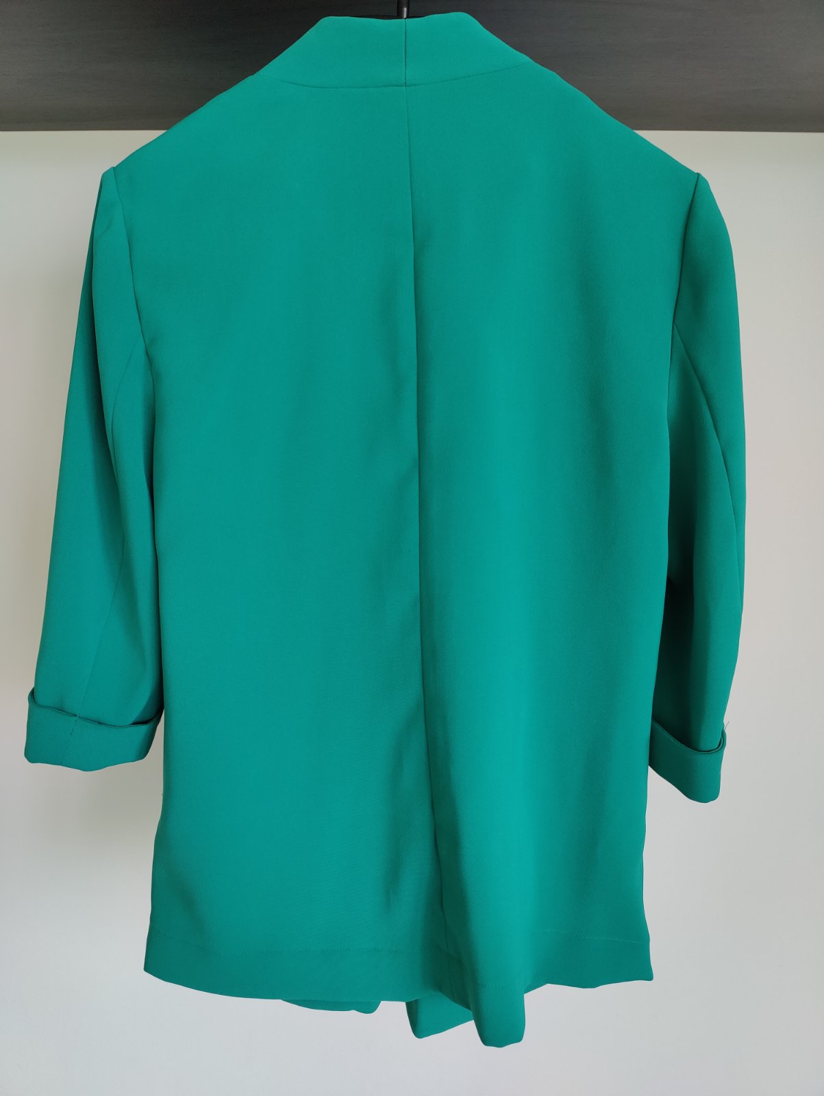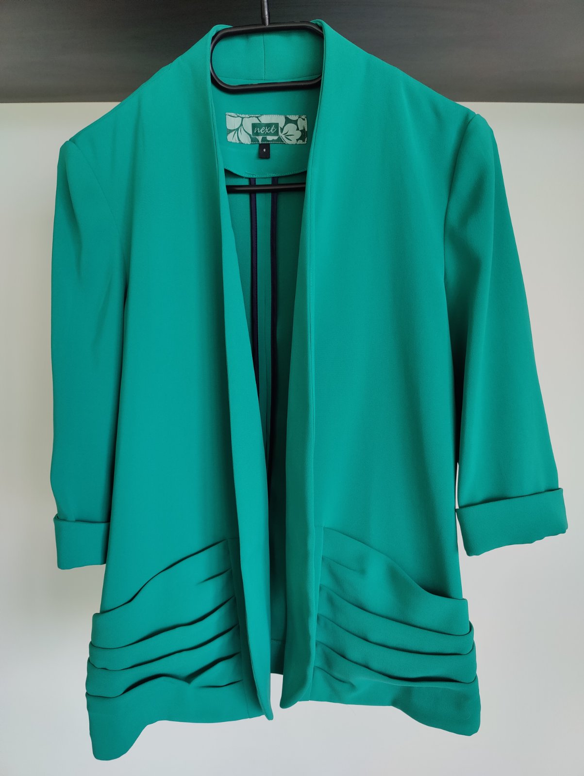 Predám dámske sako značky Next s 3/4 rukávmi, veľkosť 36, farba smaragdovozelená. Pekný nosený stav.