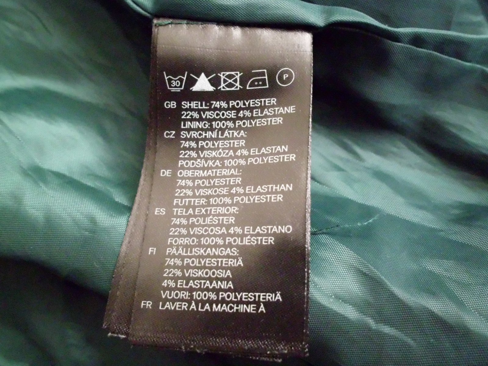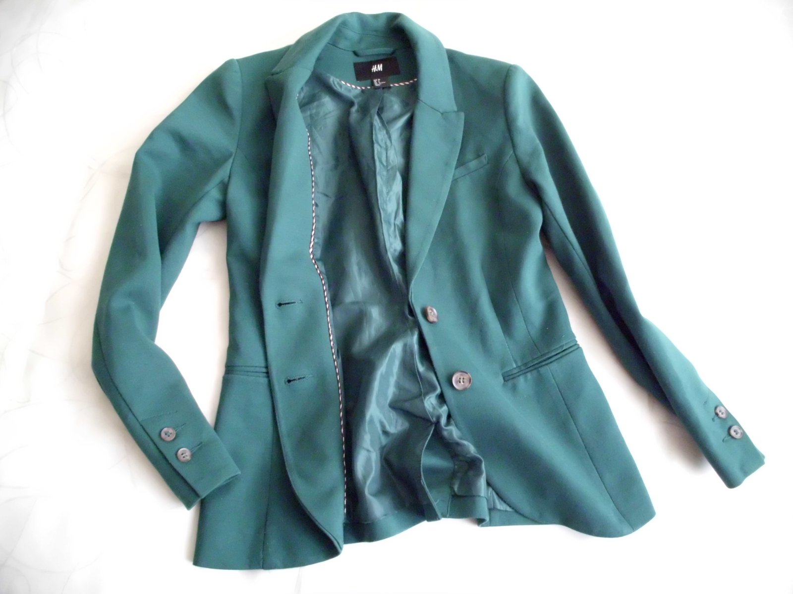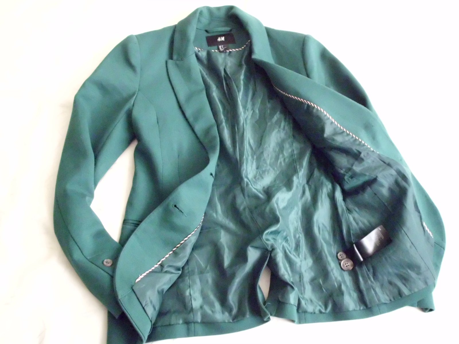 Predám dámske sako H&M vel. XS-S (36), dĺžka 60 cm, šírka 44 cm, rukáv 59 cm, celé podšité podšívkou , príjemný kvalitný materiál ,3 vonkajšie vrecká (ešte zašité), pekná tmavozelená farba , 100% stav