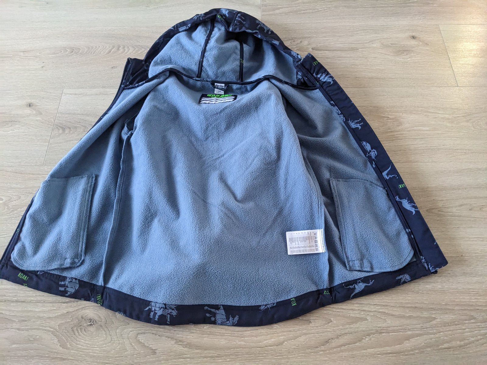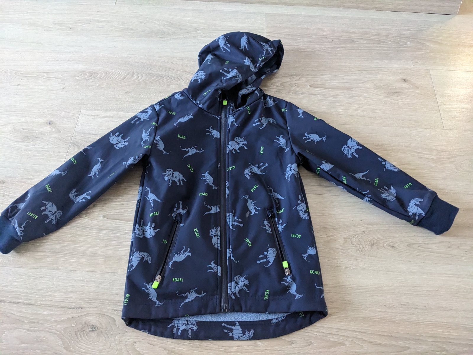 Krásna softshellová bunda podšitá fleecom, nosená vo veľmi peknom stave. Na patentoch má trochu žmolky. Reflexné prvky. Veľkosť 128.