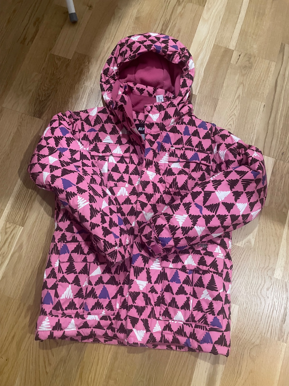 Zimna bunda TCM s kapucňou velkost 146-152, ružovo- sivá, snežný pas, nosena, funkčná- zipsy idu. Cena plus poštovné
