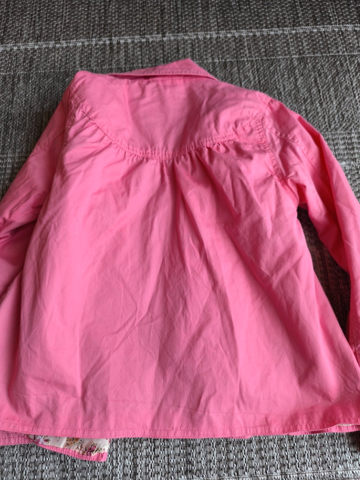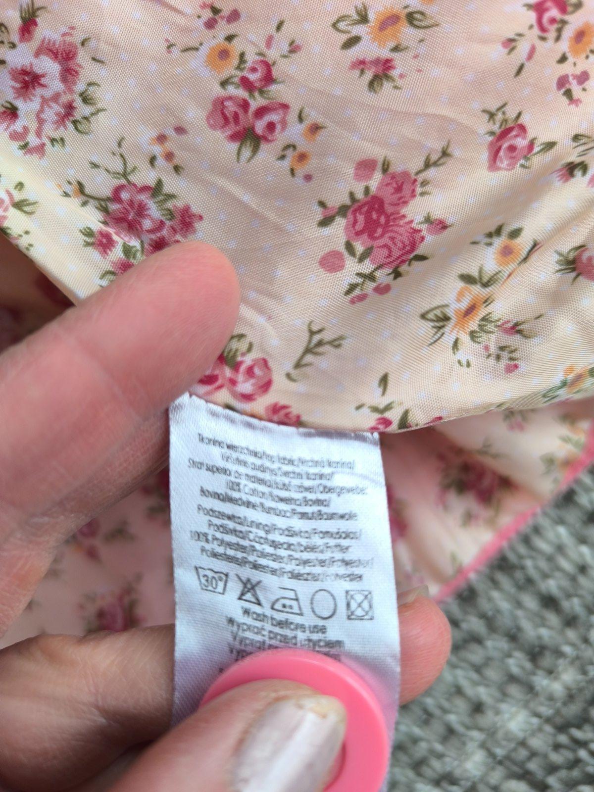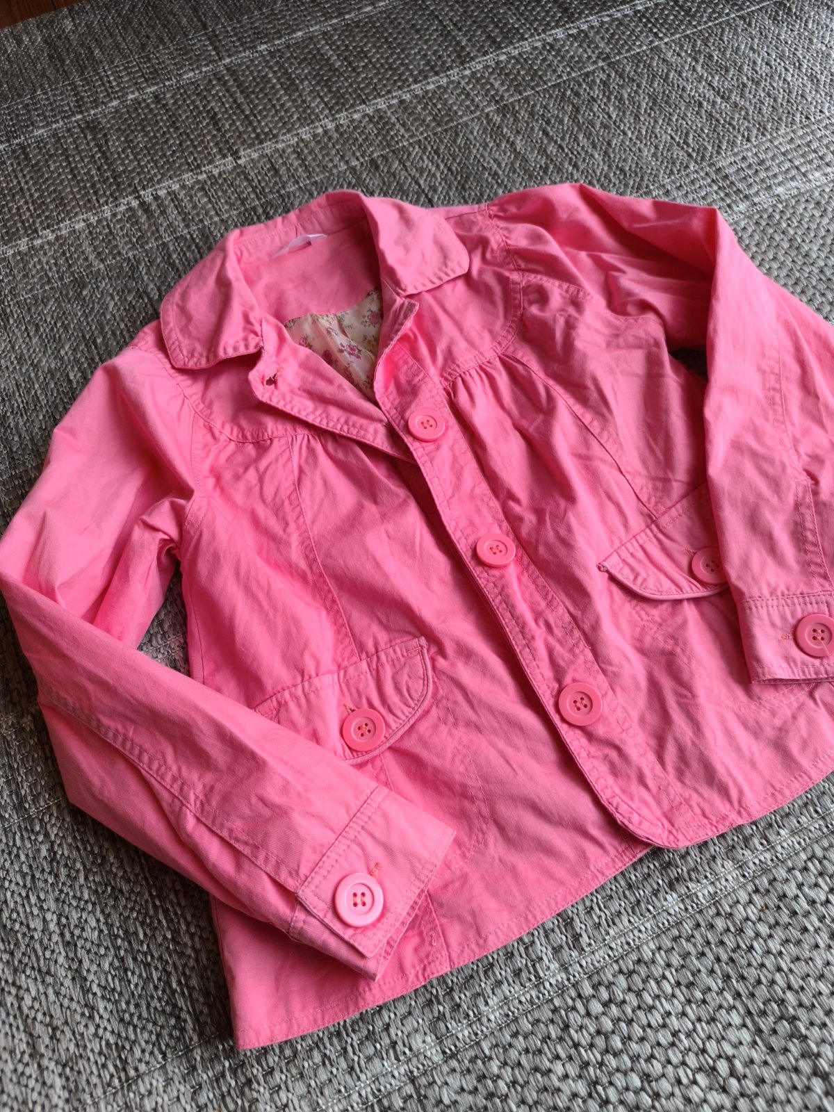 Tenké bavlnené sačko s kvetovanou podšívkou z polyesteru. Vhodné aj na príležitosť. Veľkosť 140. V super stave. Dĺžka 51cm, šírka cez hrudník 41cm, rukáv od ramena 52cm.