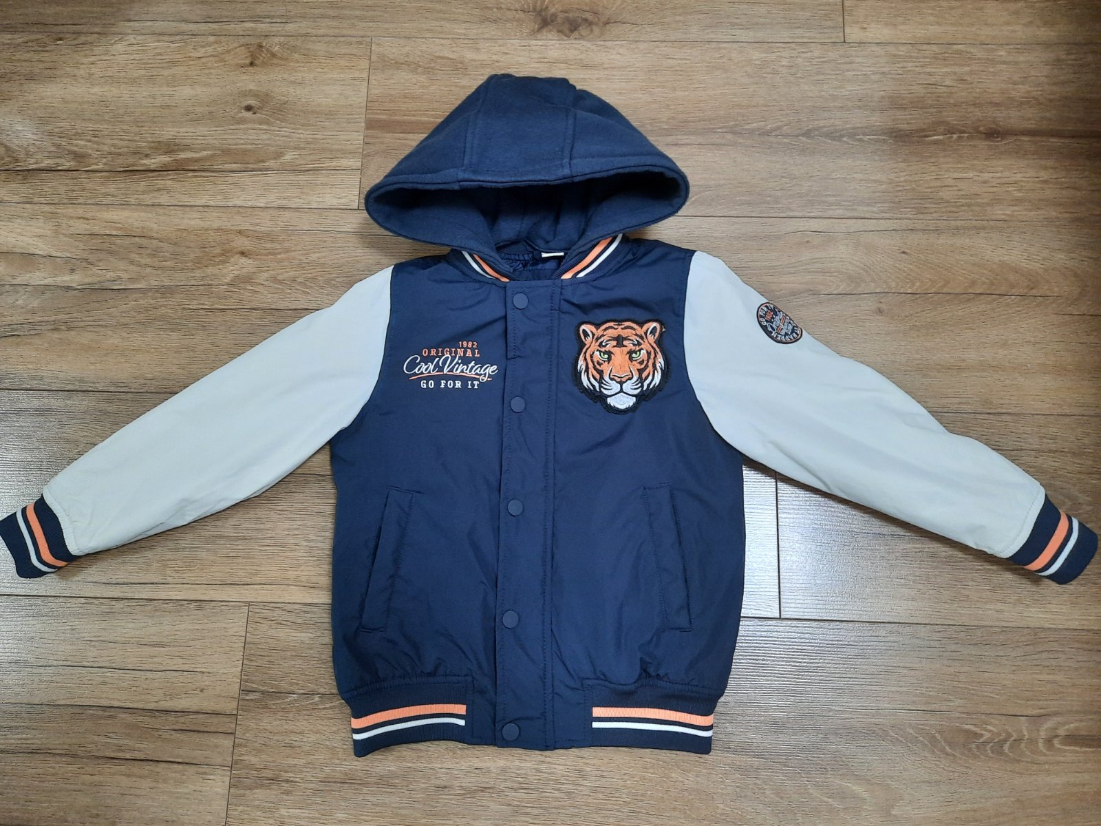 Ponukam na predaj peknu vtrovku. Nosena do skolky, ale ponosite aj ako 116. Nema poskodenia, podsita, akurat na tom bledom pase cez rukavy vidno trochu pranie, ten je bledsi ako za nova, ale vetrov...