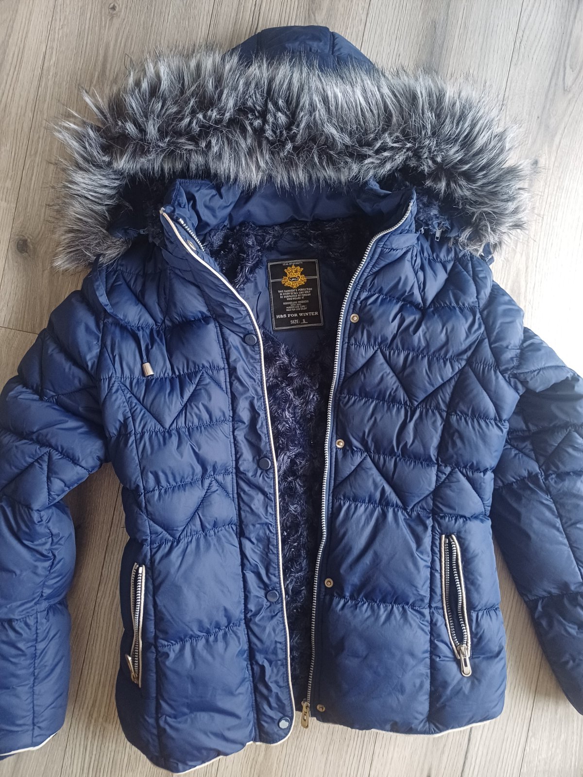 Zimná bunda, veľkosť S- rozmery na fotke Je v super nosenom stave, nemá žiadne poškodenie , jedina chybička : odparala som logo , ktoré bolo na prednej strane bundy , vidno na poslednej fotke Ma v...