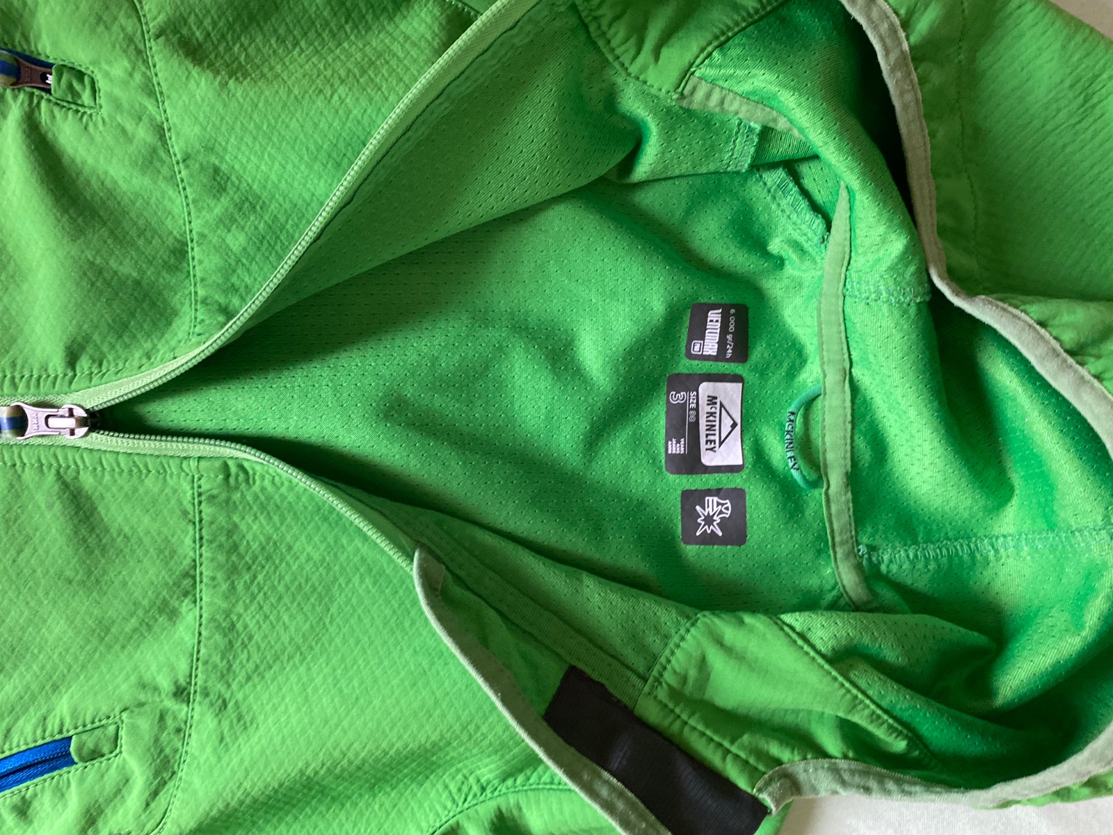 TOP stav, ako nová, bez akýchkoľvek známok použitia, vzatá možno raz. Je to niečo medzi mikinou a bundou, je tenšia a mäkučká, veľmi pohodlná na nosenie. Na rukáve na boku nápis McKinley, dole gumi...