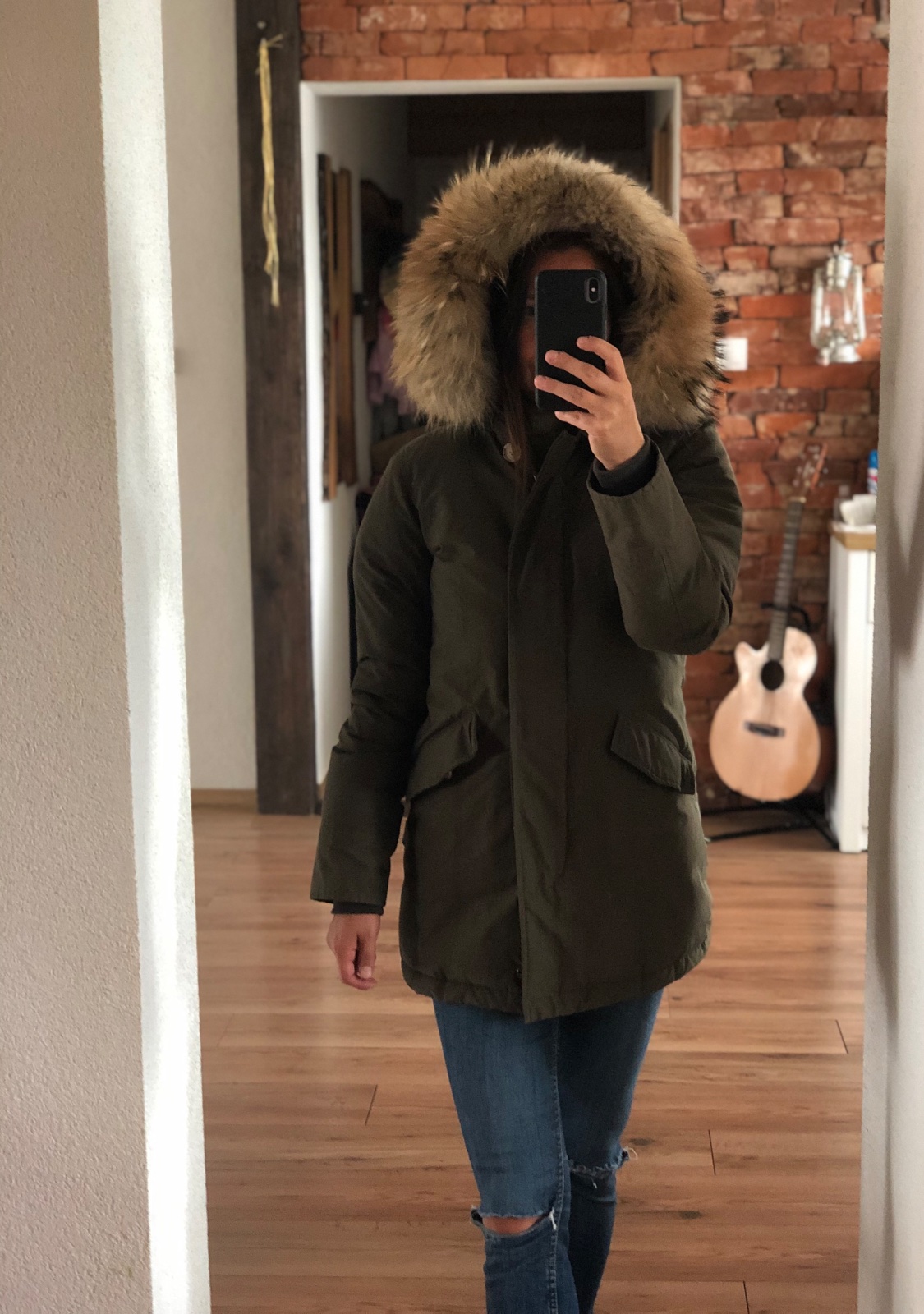 Nosena jeden a pol sezony na striedacku s inymi. Kupena cez modivo za 860€. Bunda je bez poskodeni,extra tepla. Velkostne sedi aj na Sko,na kapucni ma krasnu pravu kozusinu,v ktorej je drotik,takze krasne drzi