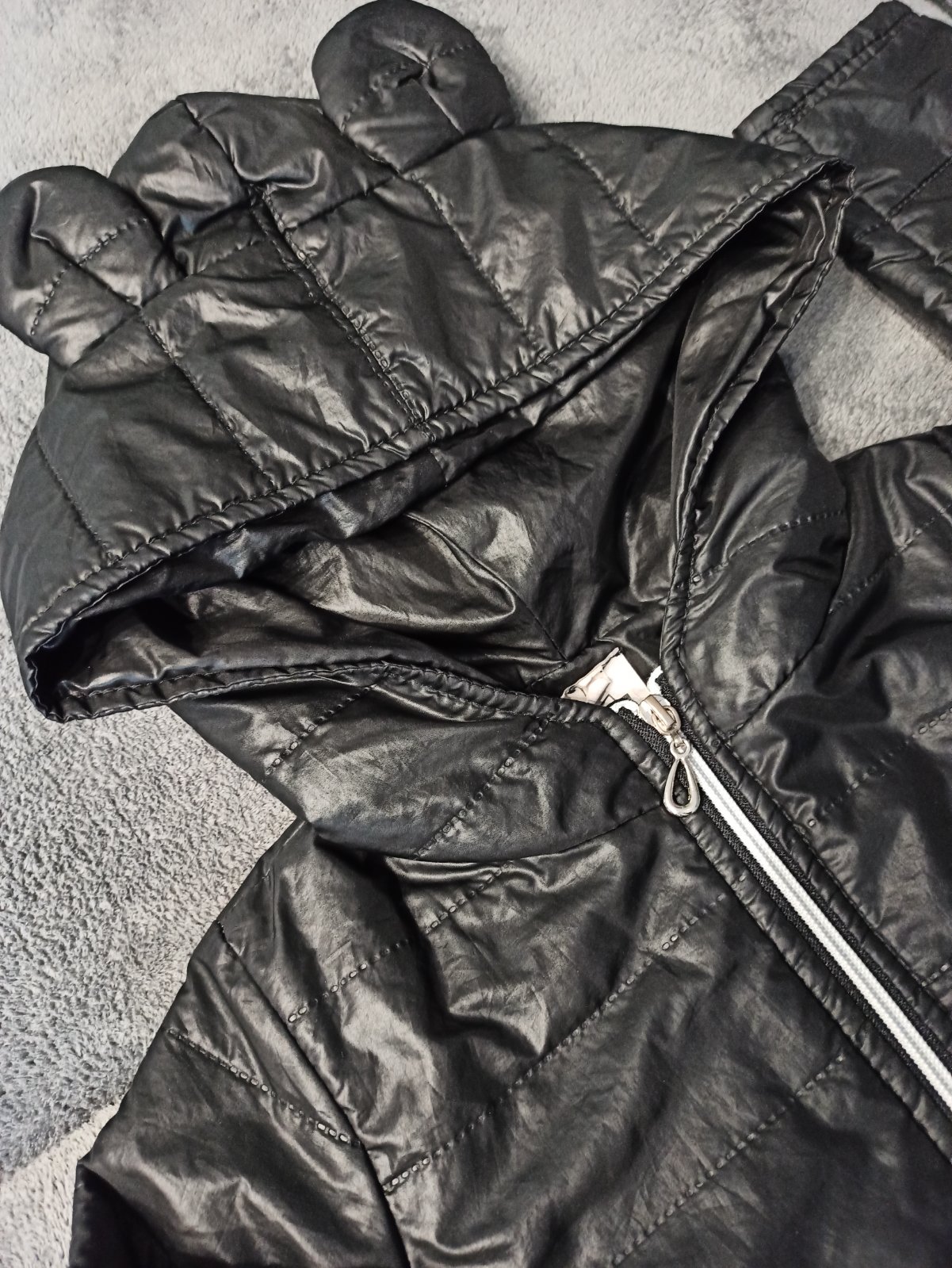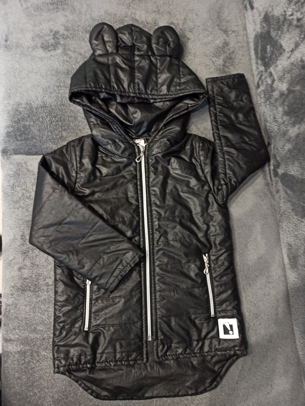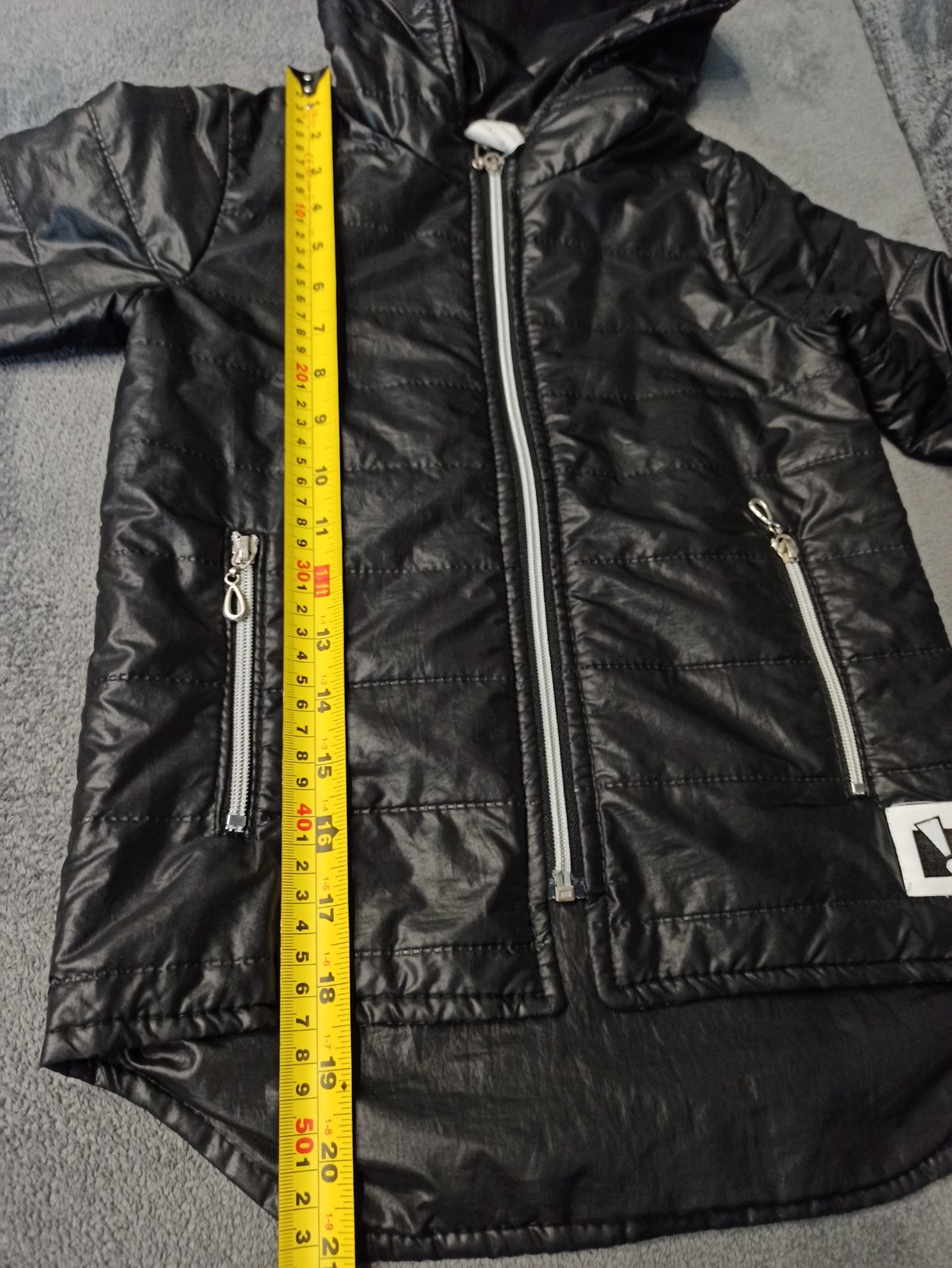 super stav, asi 2 krat oblecena, zial uz je mi mala :-( vyteplena, posiata flitrovanymi napismi Redial kvalitna znacka povodna cena 49eur celkova dlzka je 57 cm, sirka pod pazuchami v klude je 52x...