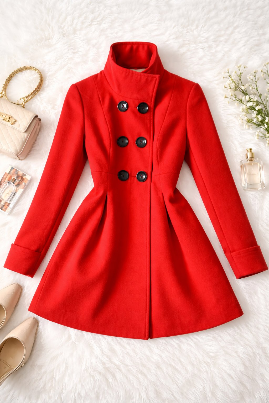 Vyšší golier chráni pred chladom a pôsobí veľmi elegantne. Kabát je ideálny na jeseň, zimu alebo chladnejšiu jar – vhodný do mesta, do práce aj na spoločenské príležitosti.