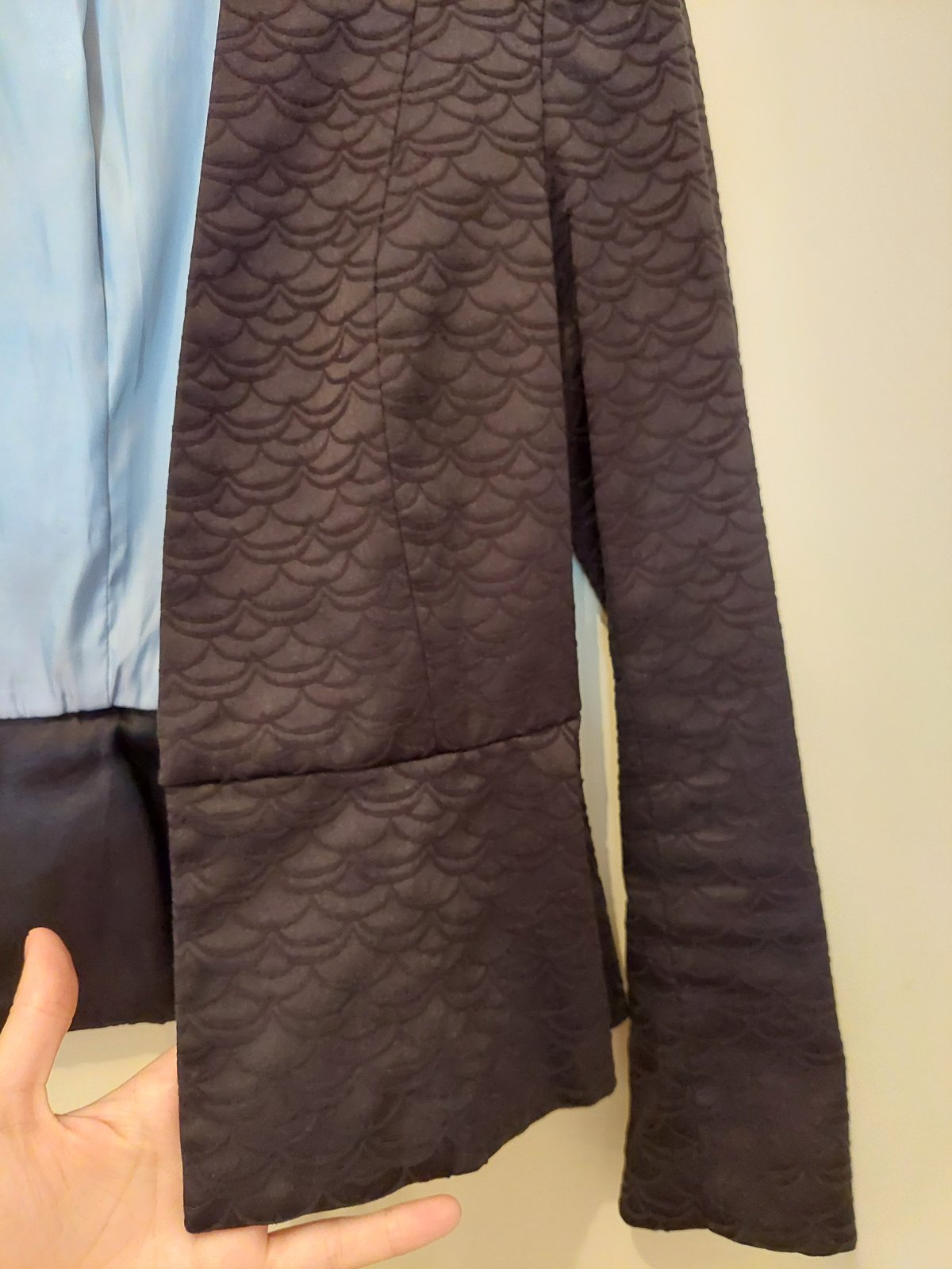 Cierne sako znacky H&M. Velkost S. Velmi zaujimavy strih. Pekna vzorovana latka, hladka.