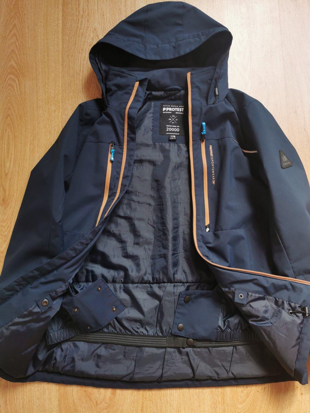 Lyžiarska bunda značky Protest vhodná aj na bežné nosenie v zime. S vnútorným snežným pásom a predĺženými vnútornými rukávmi (možné zachytenie on palce). Vnútorné vrecko, vonkajšie vrecko na skipass na rukáve + 4 ďalšie vonkajšie vrecká na zips. Vodný stĺpec 20000.