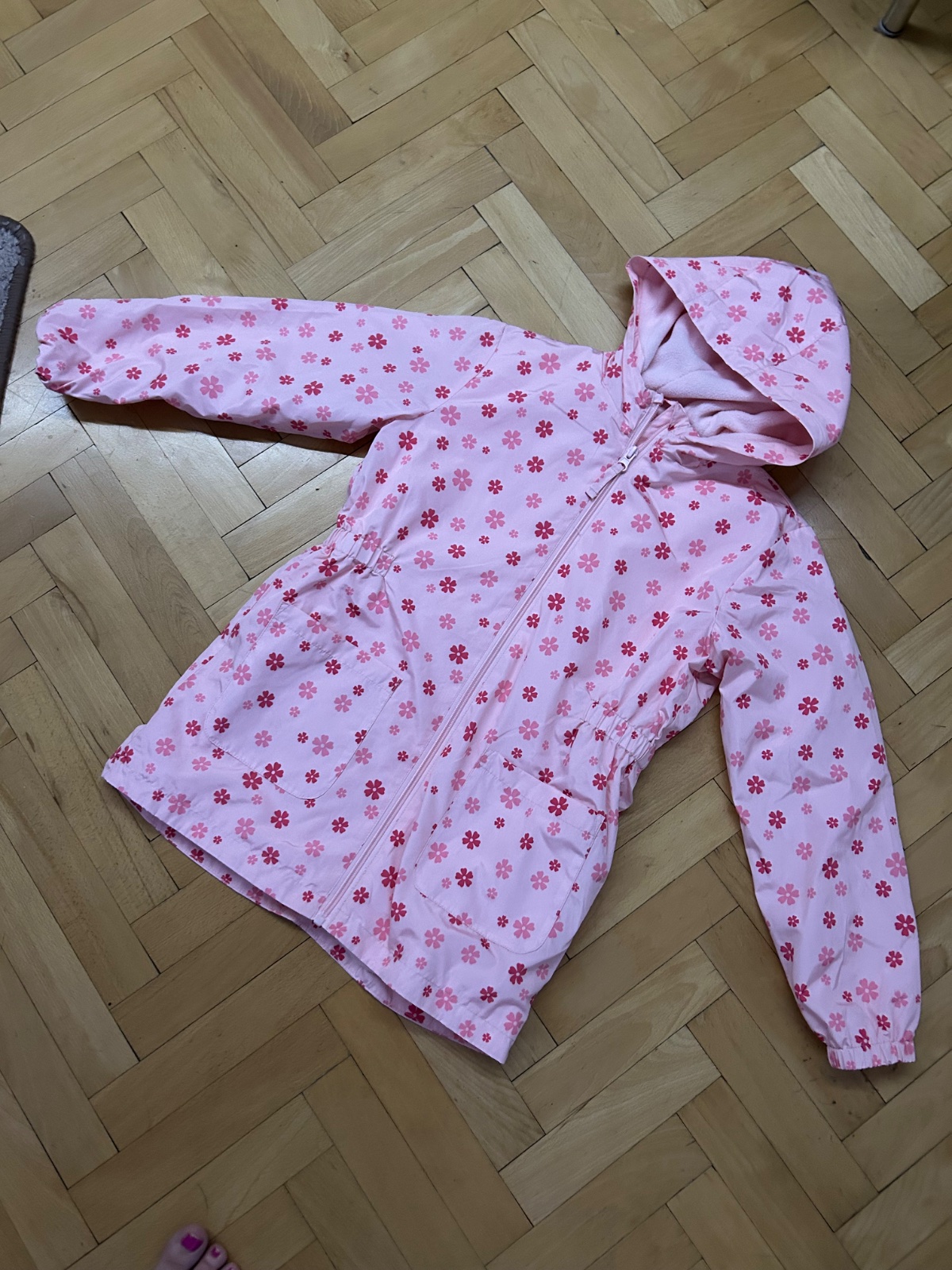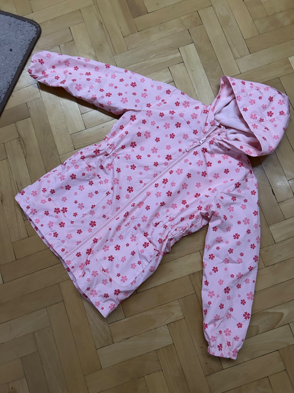Krásna prechodná bundička v krásnej ružovej farbe do pásu ,vhodná na jeseň alebo miernejšiu zimu je hrubšia.