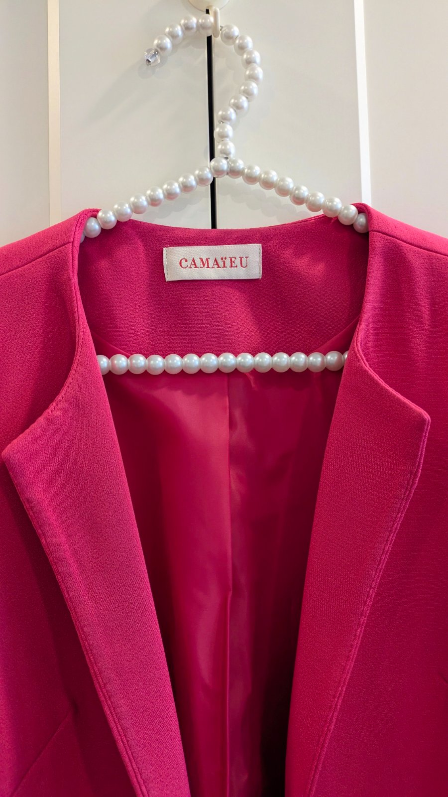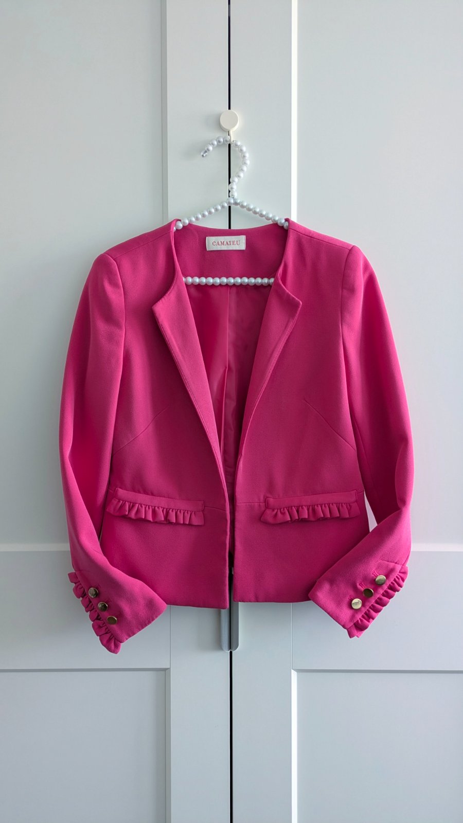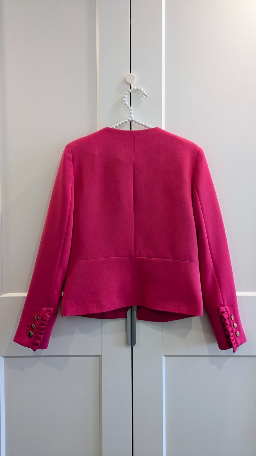 Nádherné sýto ružové sako značky Camaieu s jemným riasením na vreckách a rukávoch, ktoré oživí každý outfit. Pekný ženský strih, pôsobí moderne a elegantne.