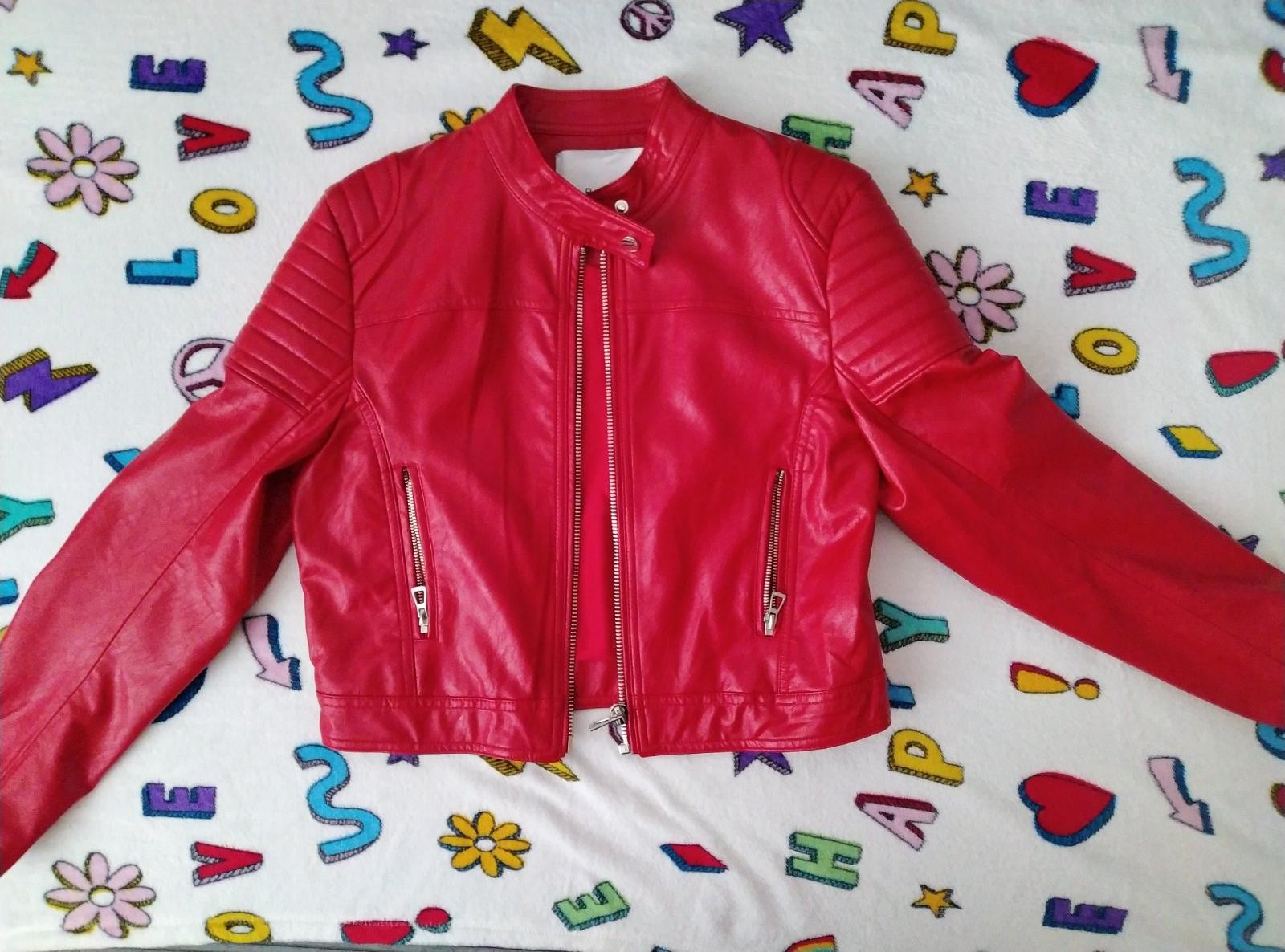 Nádhnerná červená bundička brusenej kože vo veľkosti M/38. Skoro vôbec nenosená s menšou chybou na rukáve. Pôvodná cena 50e. Predám za 19e+poštovné.