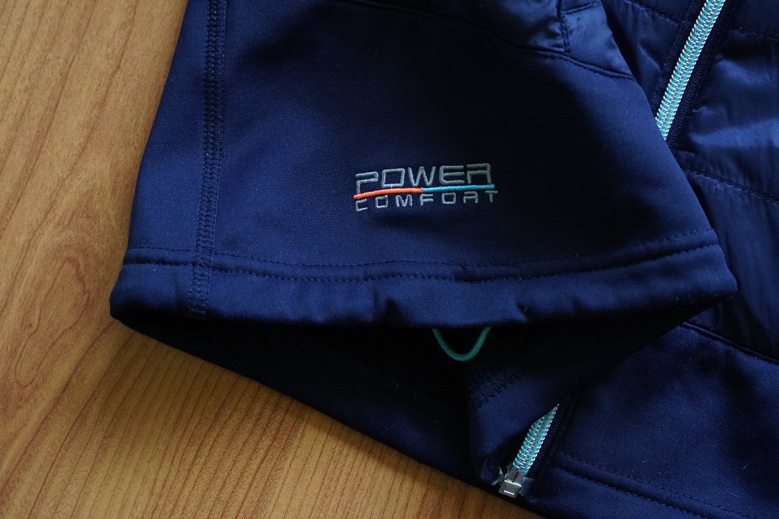 Prešívaný, zateplený predok, elastické softshellové rukávy a chrbát, celorozopínací zips, vysoký golier, dve bočné vrecká na zips.