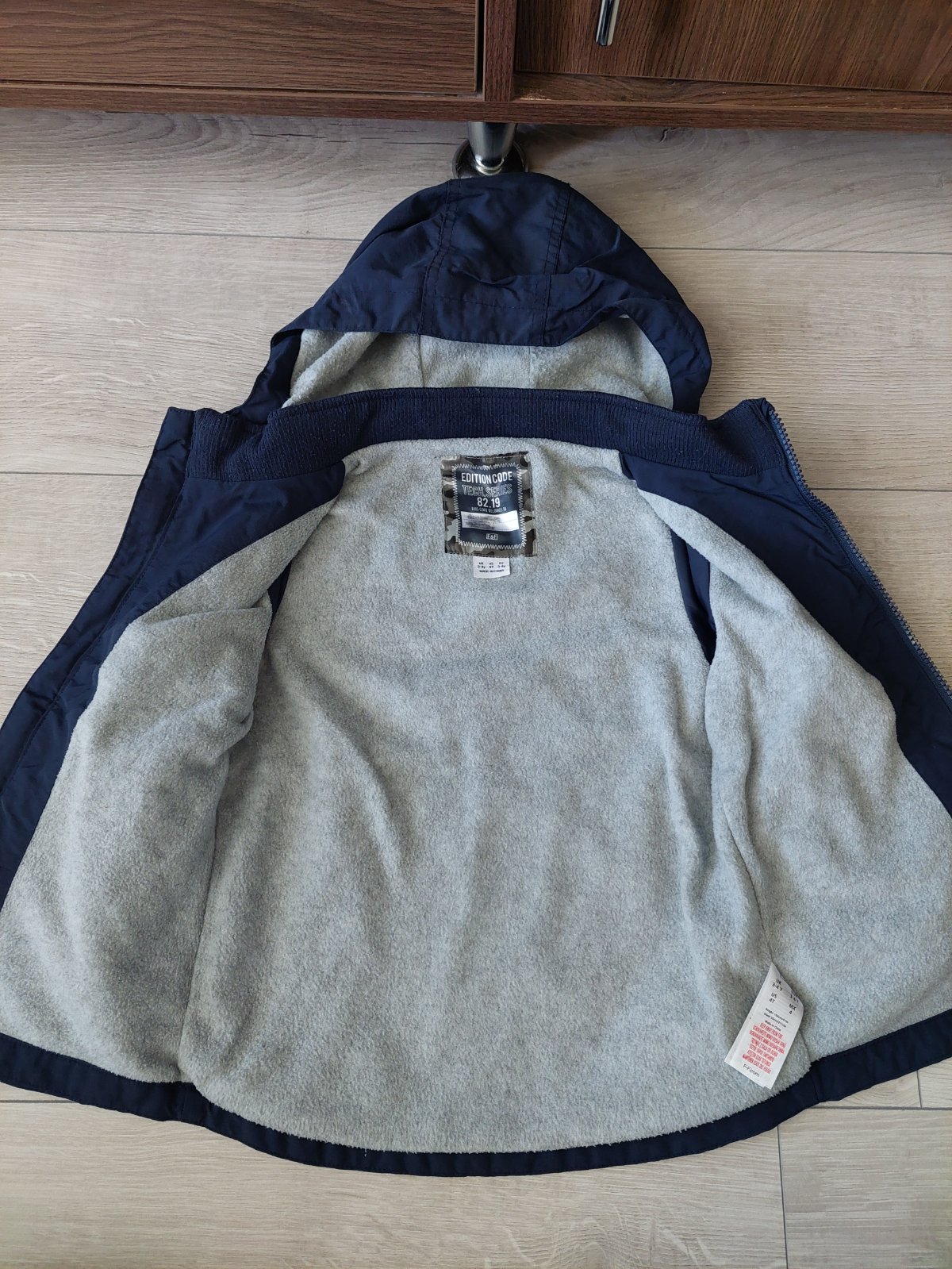 Bundicka ako nova akurat na manzetkach zvnutra male zmolceky ale nevidno to. Pise cislo 110 ale je mensia tak pisem 104.Dlzka rukava 36 cm a dlzka bundy 47cm, sirka pod pazuchami 2x37cm.Zvnutra je ...