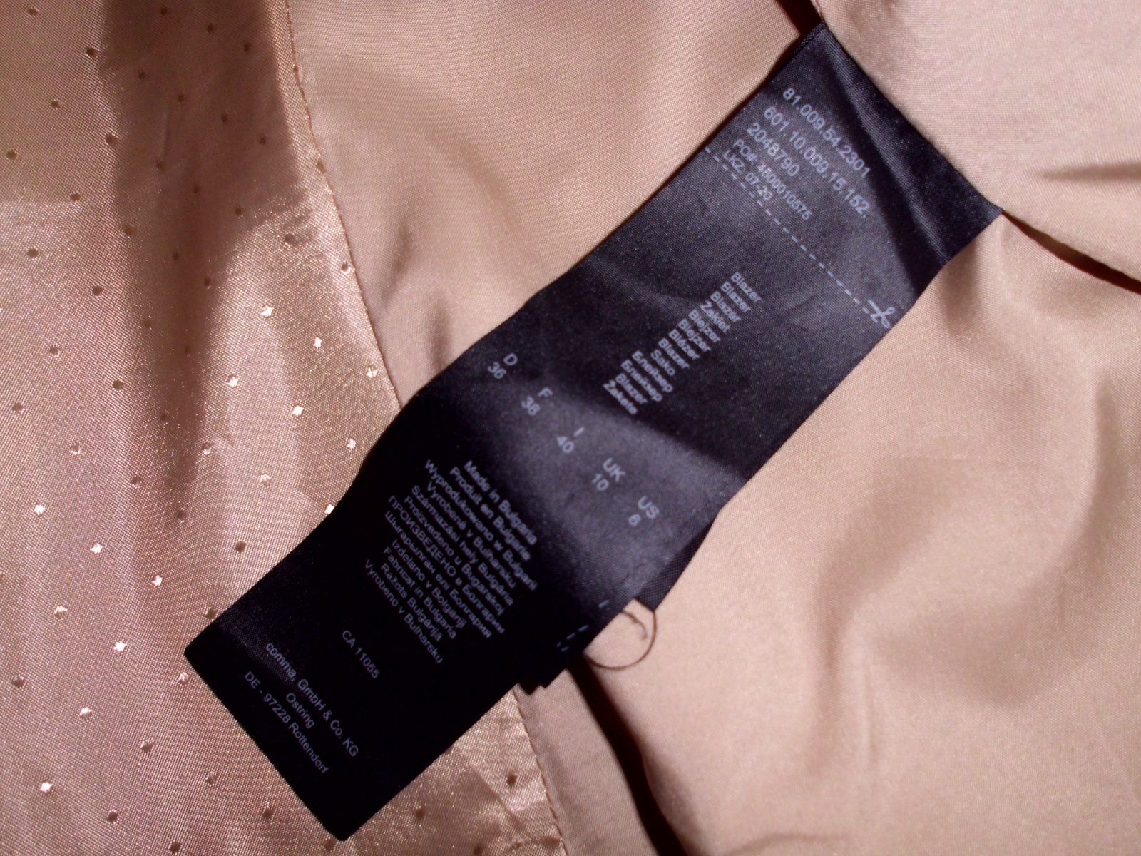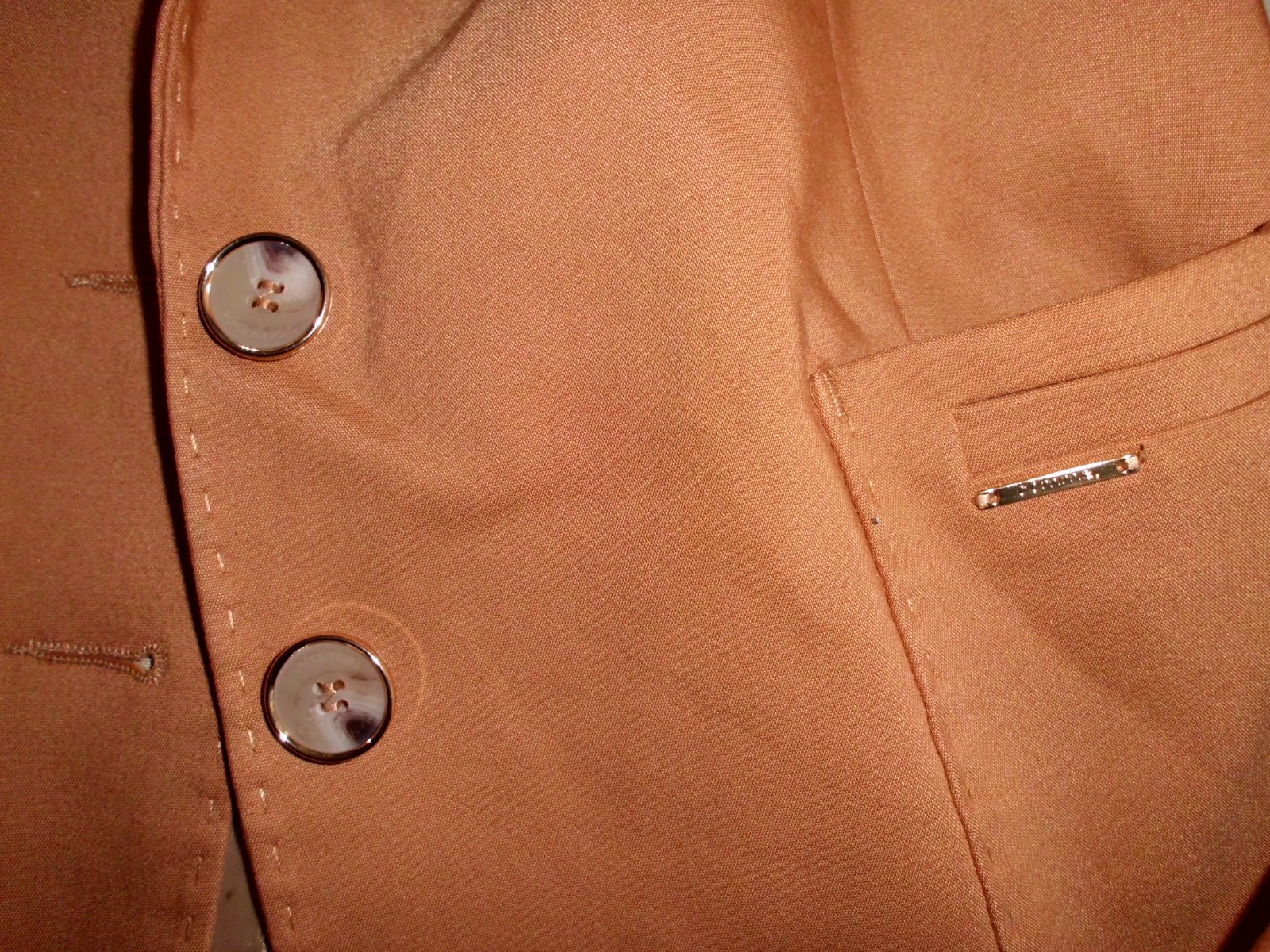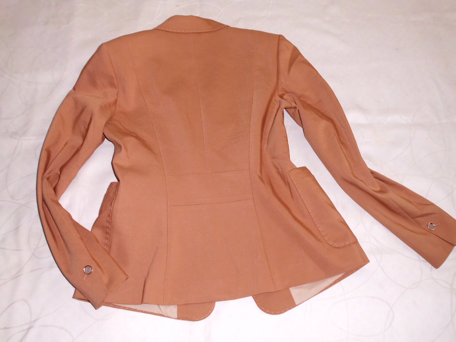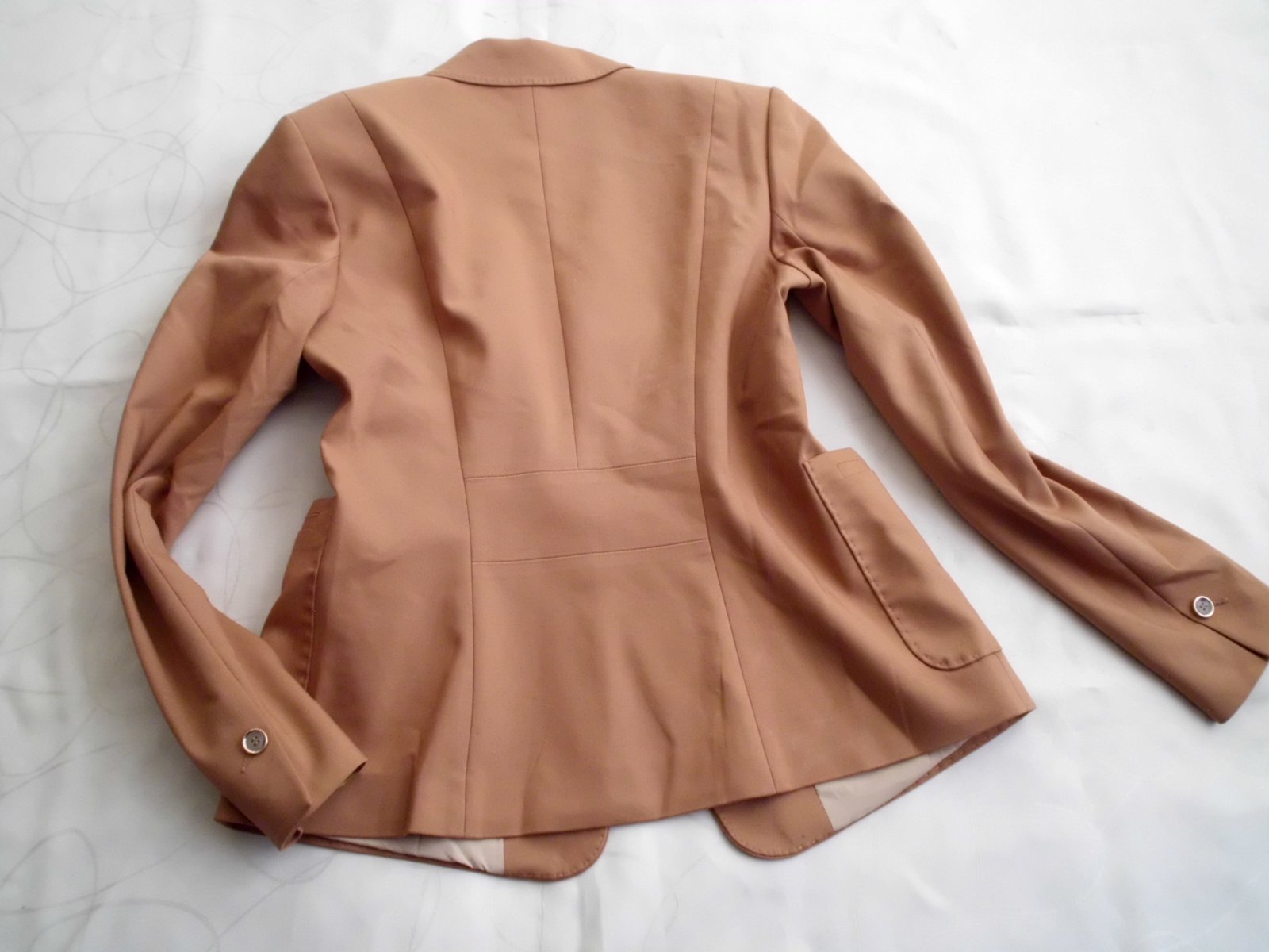 Predám dámske kvalitné sako Comma vel. S , dĺžka 57 cm, šírka 45 cm, rukáv 60 cm, celé podšité podšívkou pekne vypracované štepovanie , príjemný materiál zloženie na foto s elastan, 2 vonkajšie vrecká , pekná bledohnedá ťavia farba , 2x krát oblečené, 100% stav