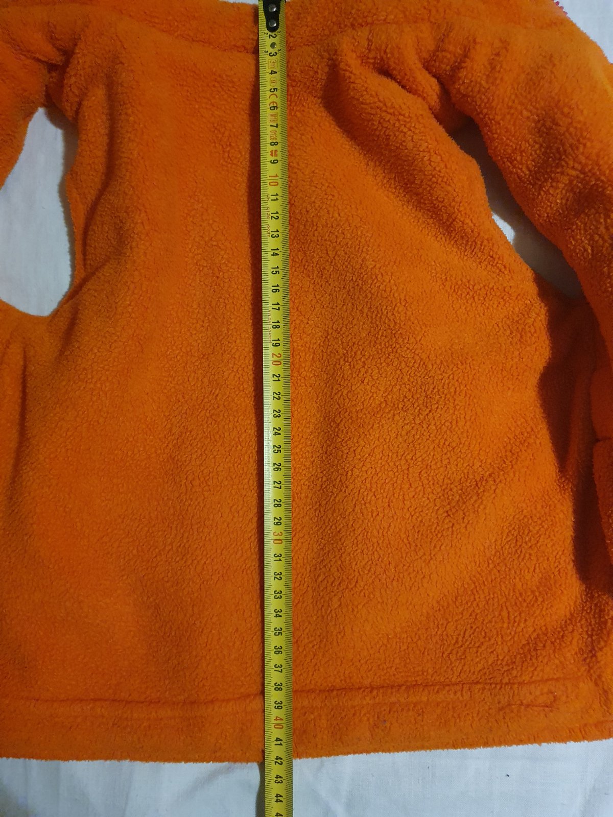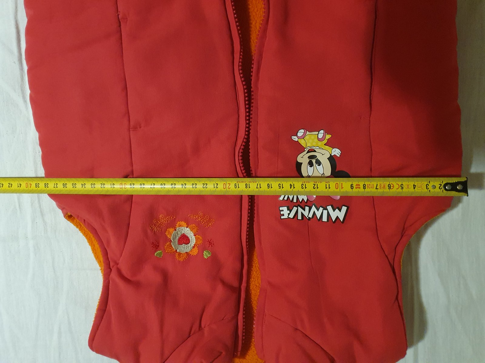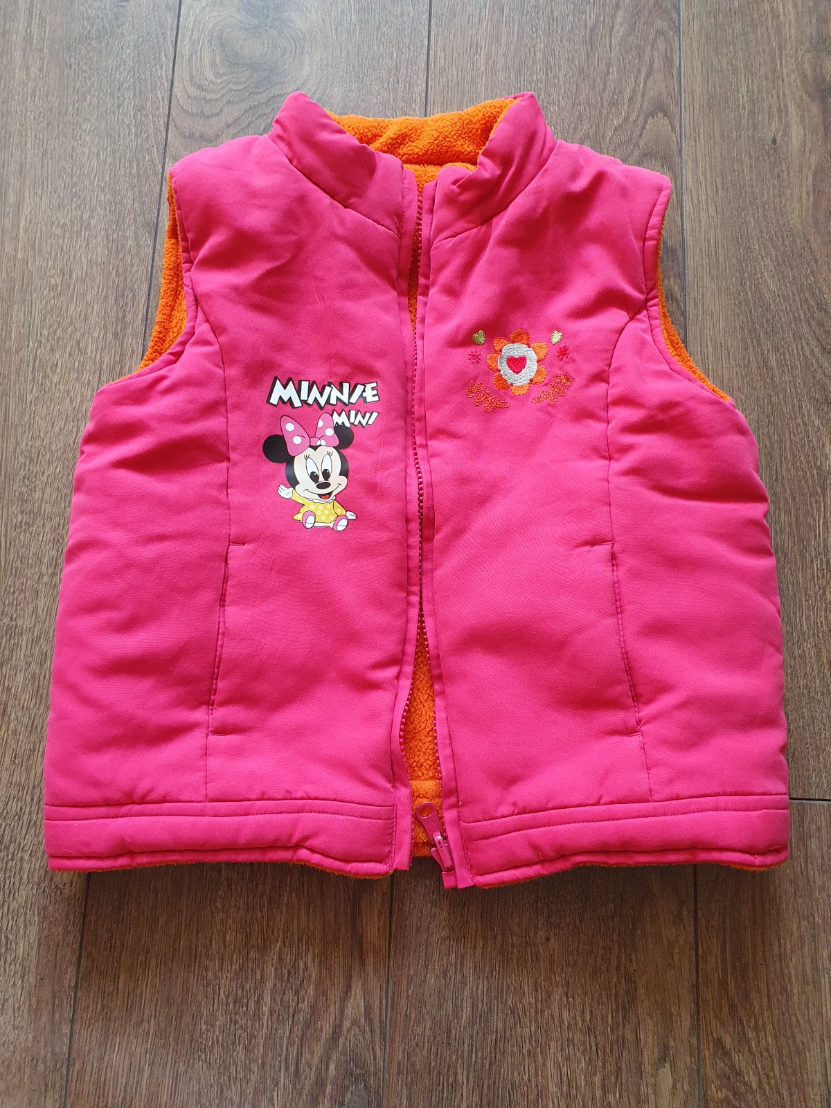 Obojstranná vestička, oranžová fleece, ružová látka. Pomerne teplá.