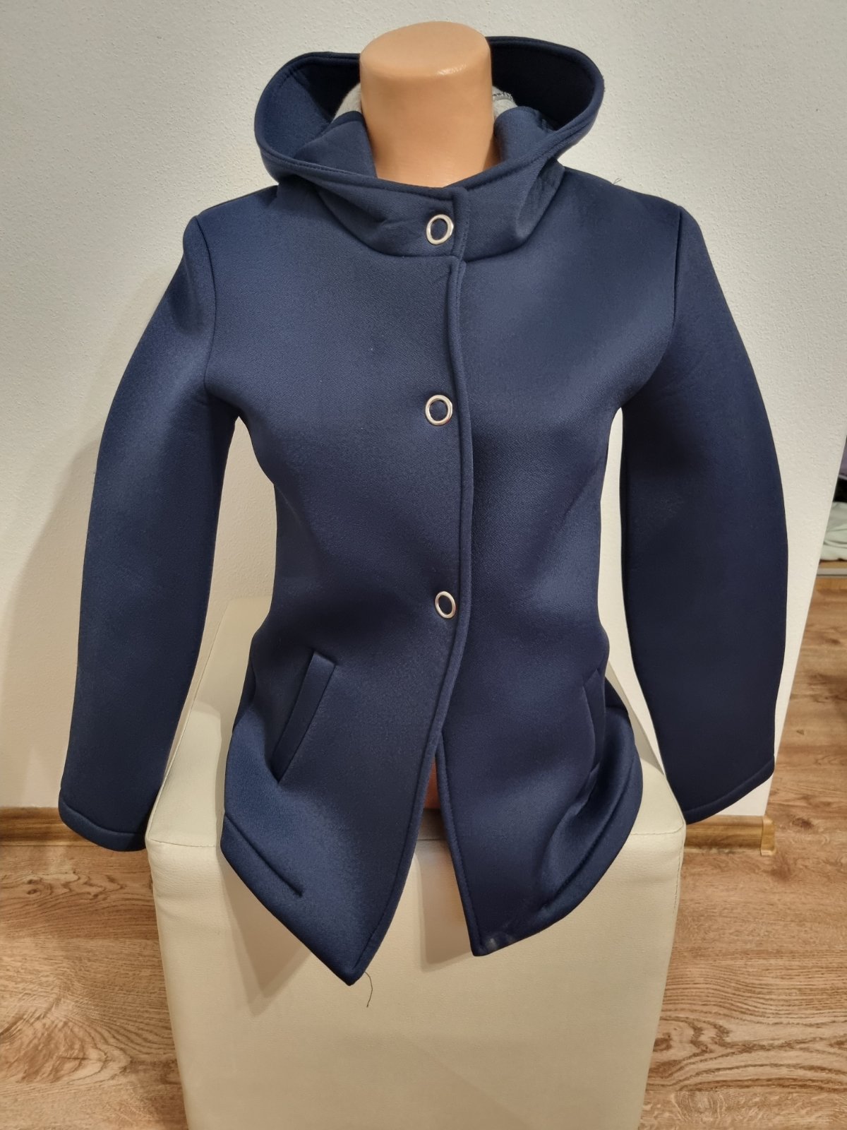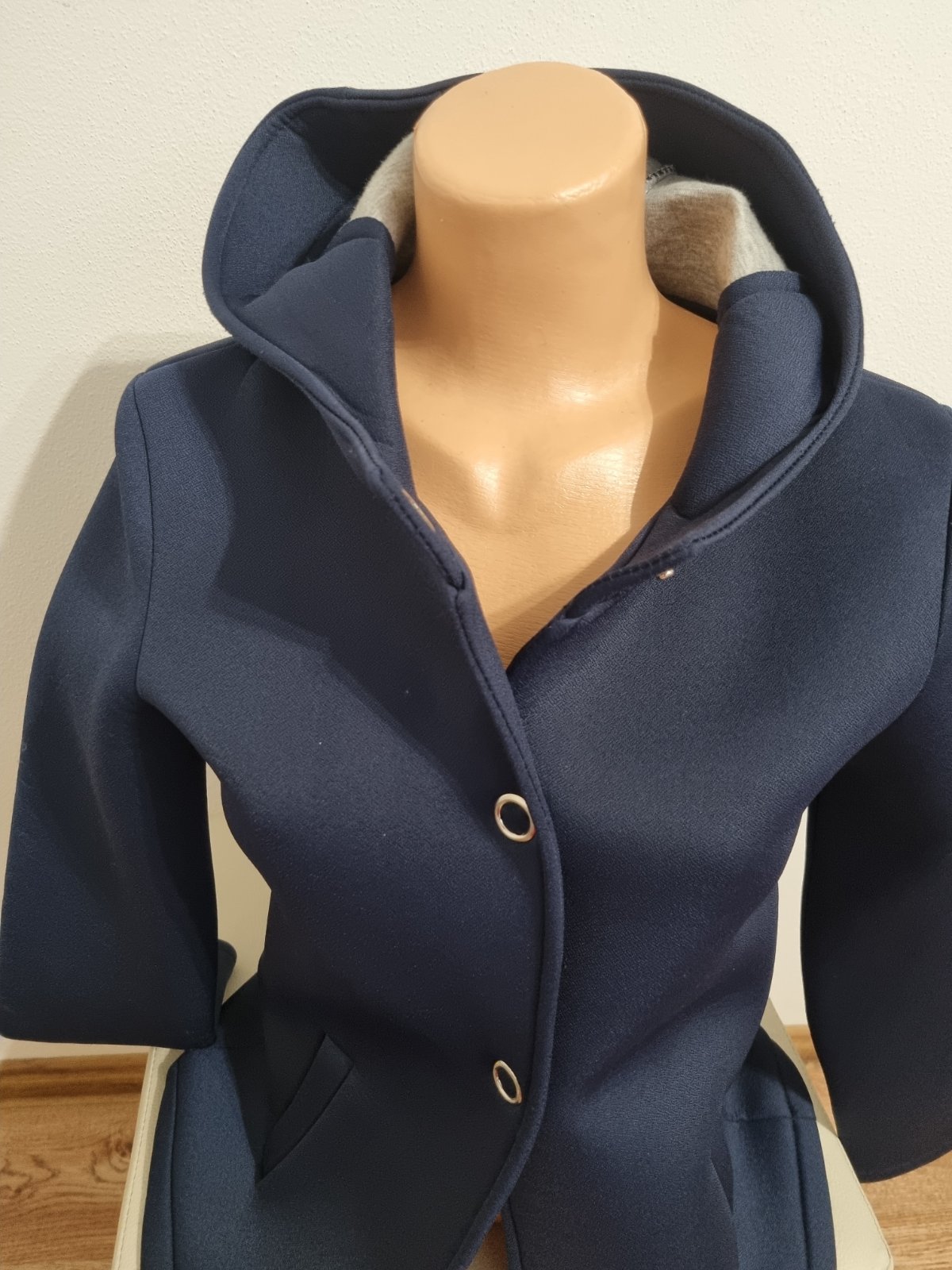 Rifľový kabát Isolda je predlžený športový jarný kabát s opaskom a zaujímavým asymetrickým strihom. Rozmery: veľkosť S - prsia 44 cm (x2), pás 39 cm (x2), boky 46 cm (x2), dĺžka 75 cm Materiál: 96...
