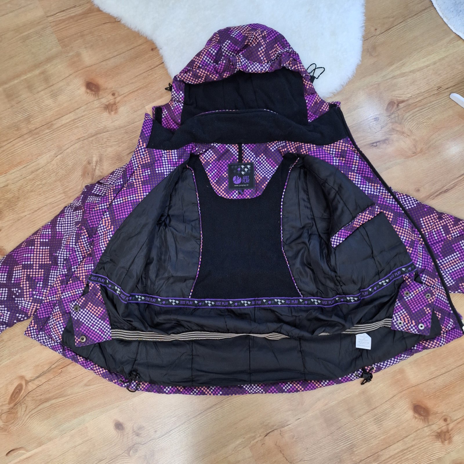 Kvalitná bunda vo výbornom stave. Je to dvojčíslie 152-158. Bunda má len mini chybičku a to je šnúrky už sú vyťahané viď foto. Nič strašné to nieje, dcera nosila aj s takymito gumičkami. Inak tip-top stav.