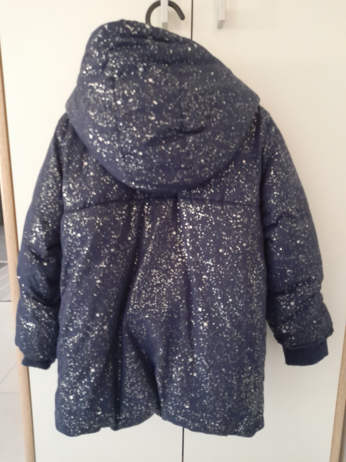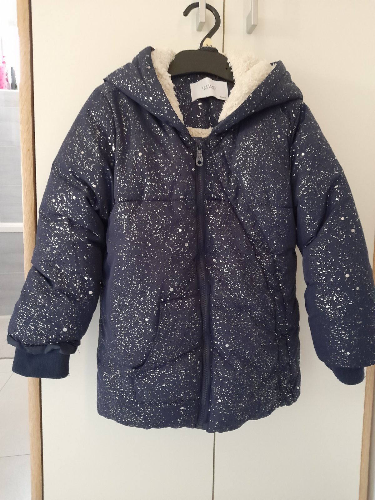 Nosena, bez poškodení, tmavomodrá so striebornými "fŕkancami" .