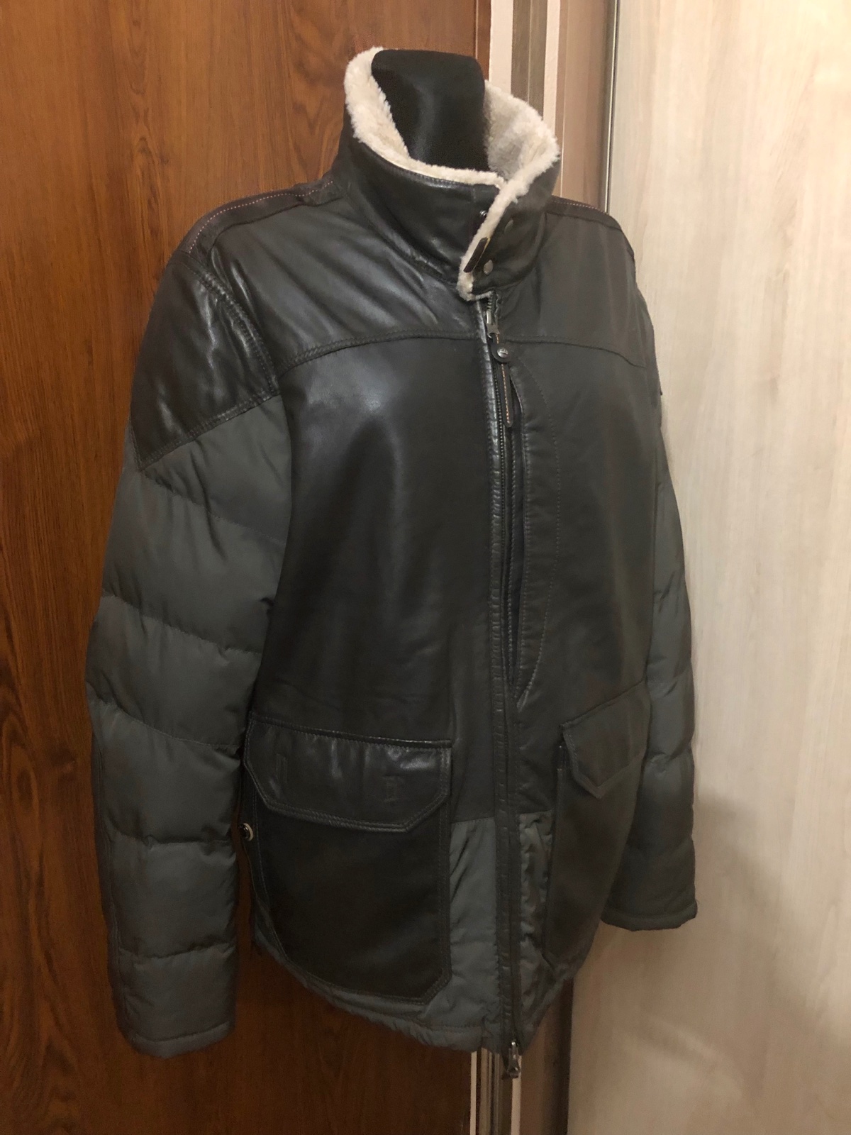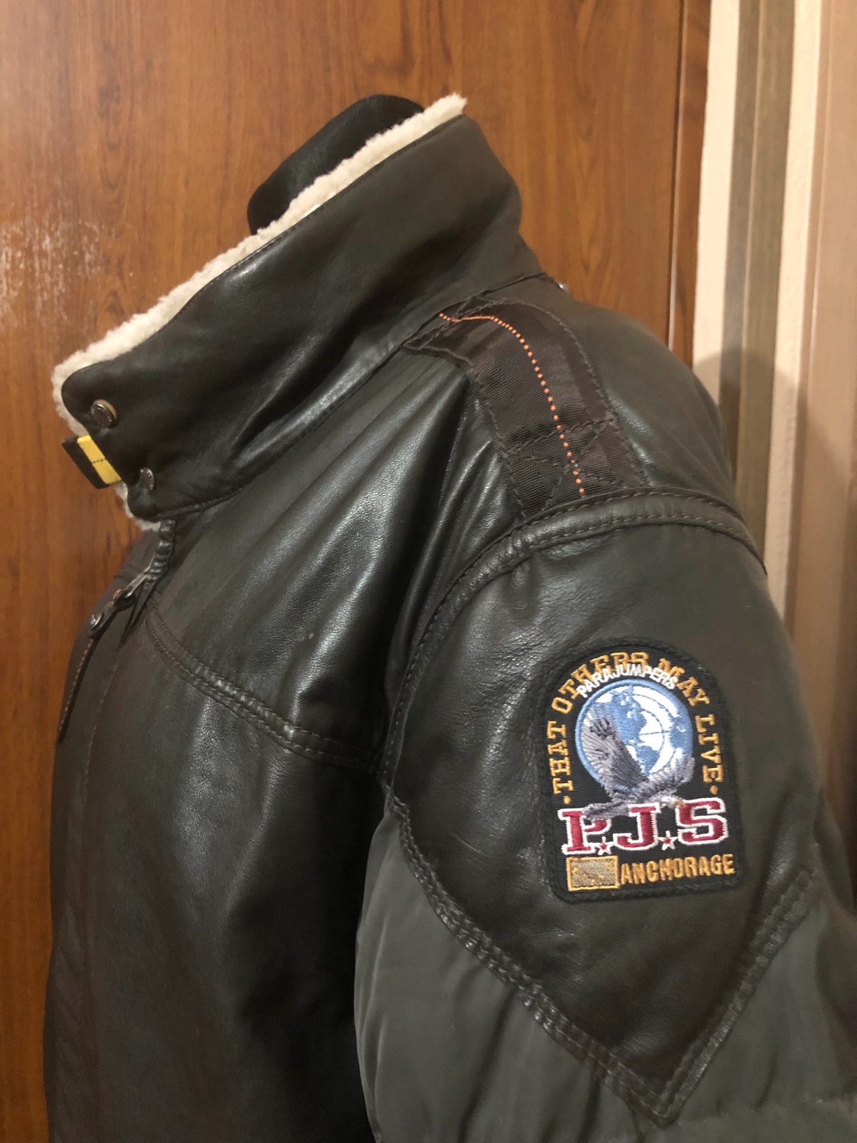 ….P.C-990e….original značka PARAJUMPERS….Ako NOVA 100% stav,oblečená 3-4krat,vel.L-aj sedí,pánska bunda v kombinácii s kožou,prsia-62x2,boky sa dajú rozšíriť do 62x2,dlz-75cm,rukáv od plavca-70cm.