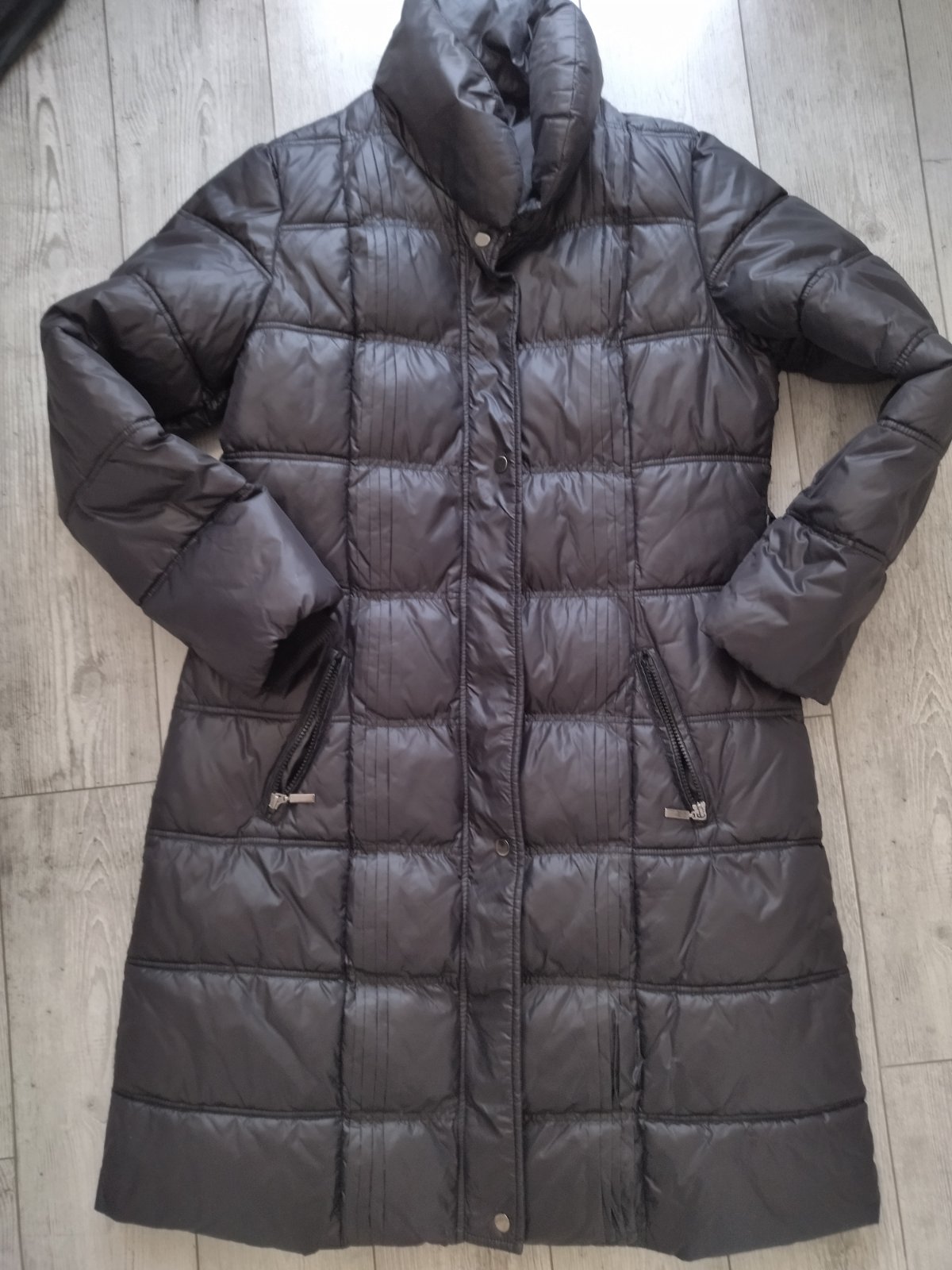 Teplá hrubá bunda v super stave.Bez kapucne.Pekna bunda prsia do 60/2 pás do 58/2 boky do 65/2 dĺžka 107cm Rukáv od vrchu 78cm.Je bez kapucne.