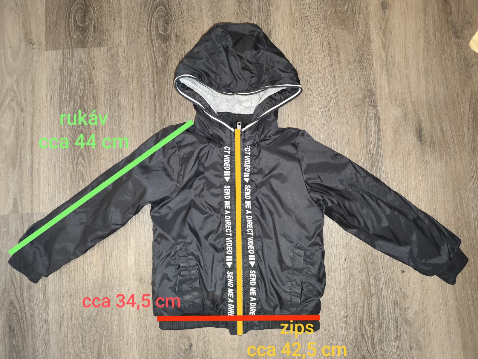 Čierna bunda vhodná na prechodné obdobie v top stave, veľkosť na 5-6 rokov, rozmery na foto.