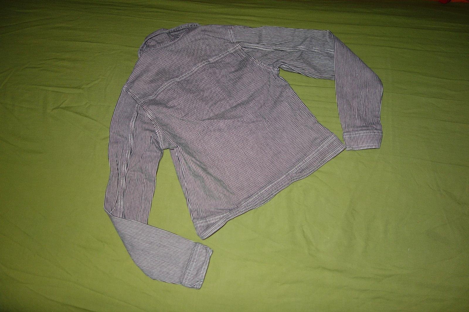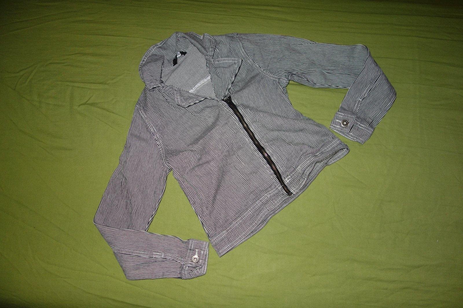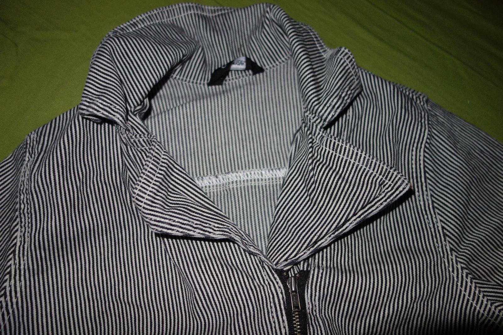Krasna pruzkovana tenka bundicka vo velmi dobrom stave. Je ako riflova.
