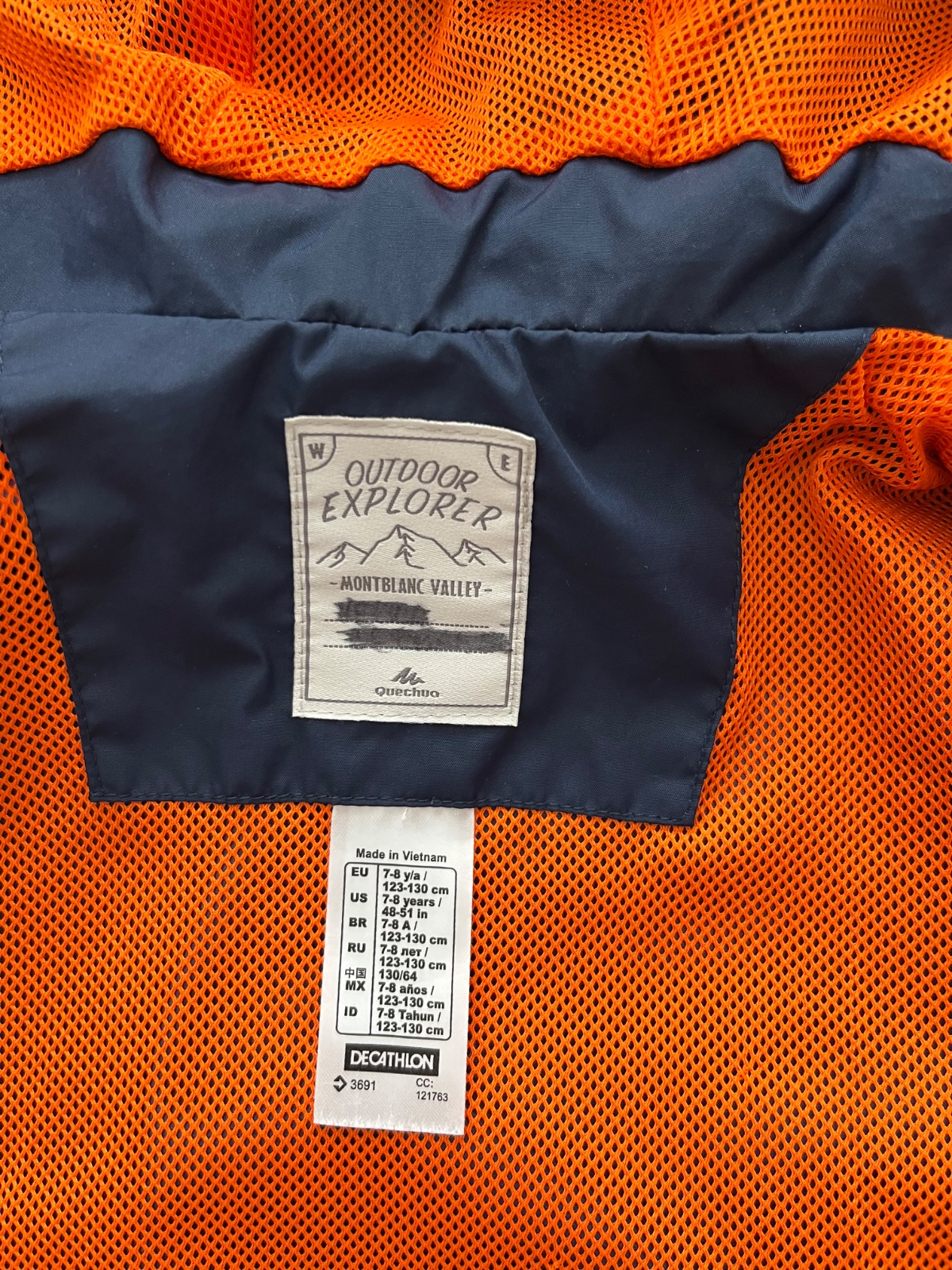 Prechodná sustakova bunda s podsivkpu, kapucnou a vreckami. Bez poskodeni, osuchania. (Decathlon)