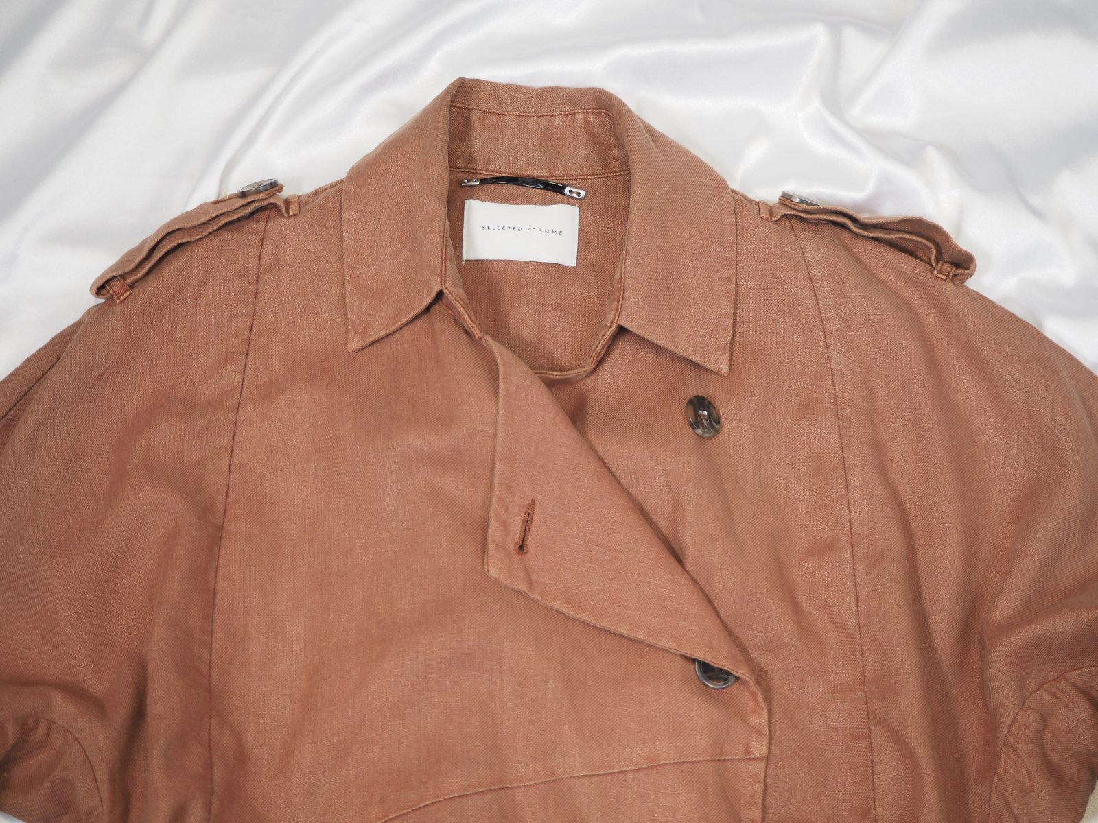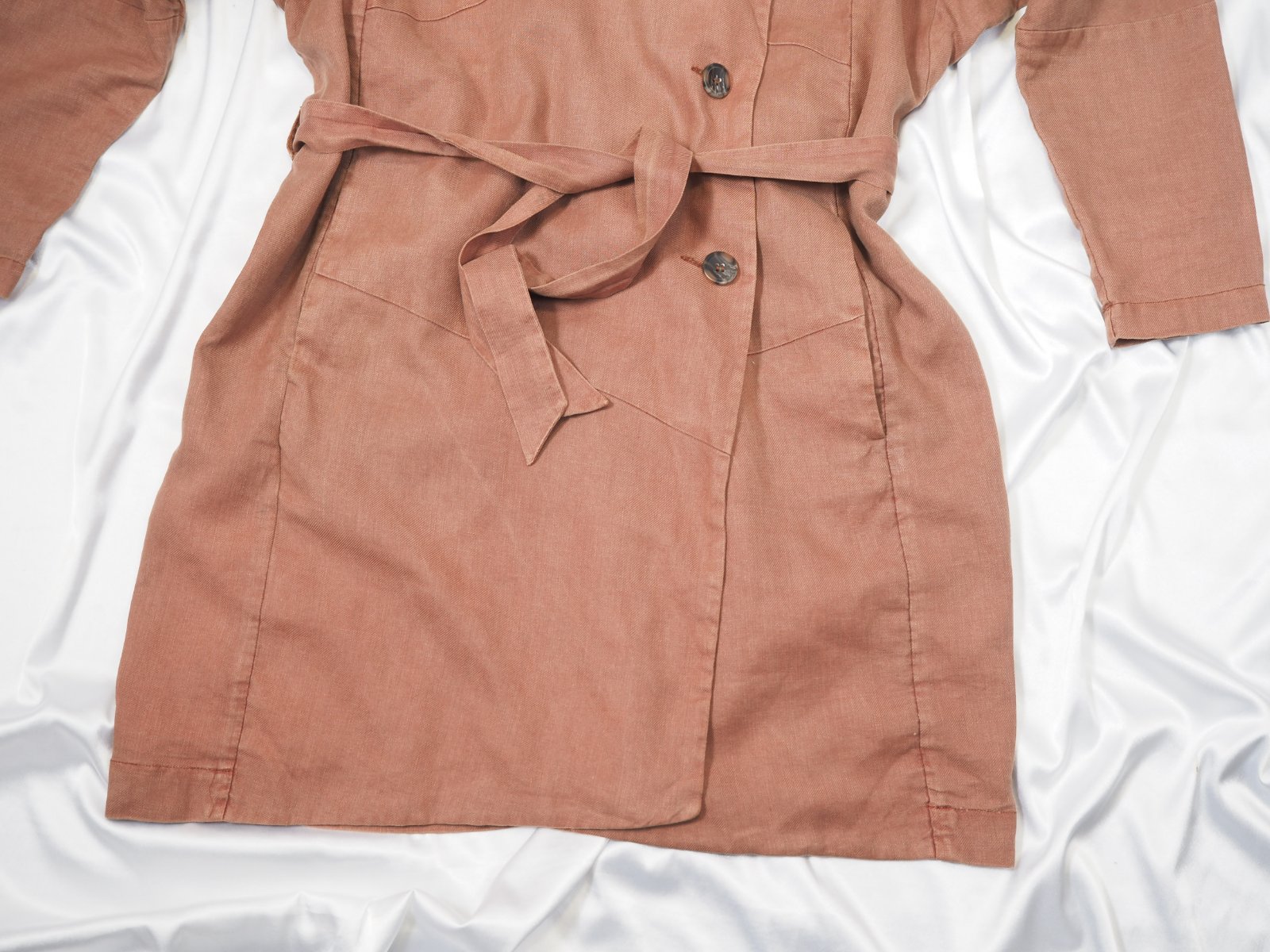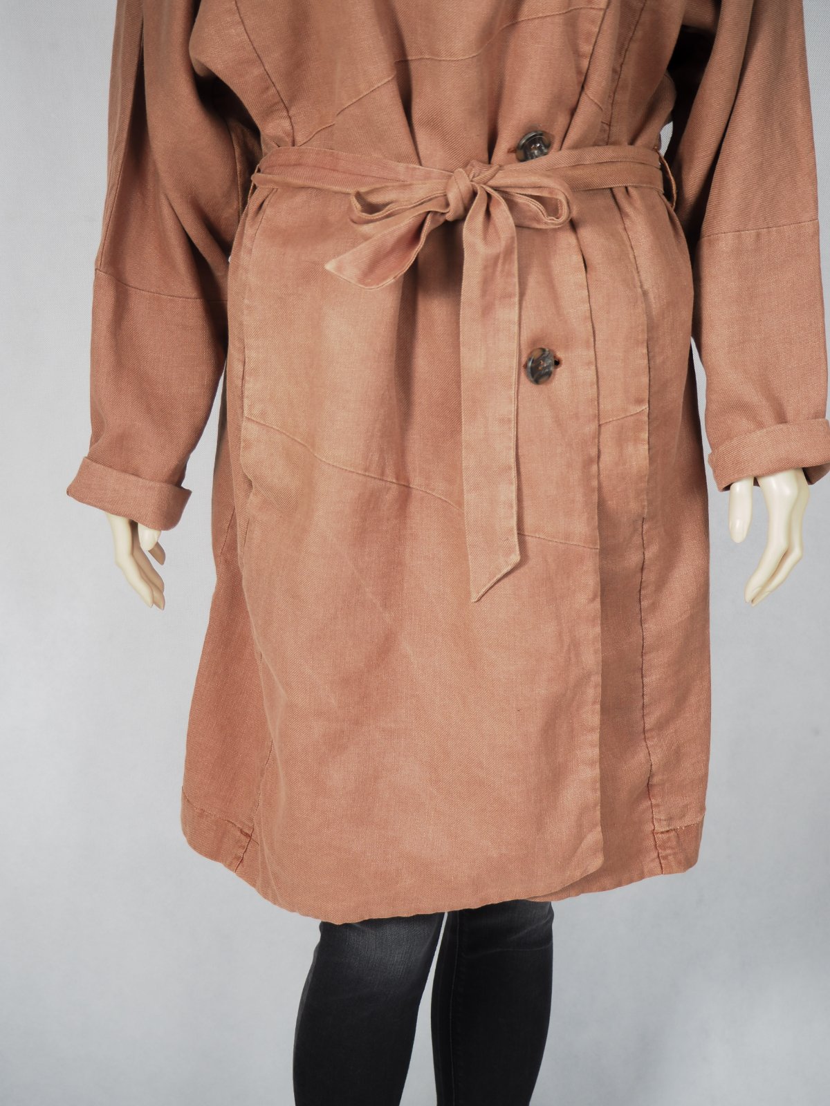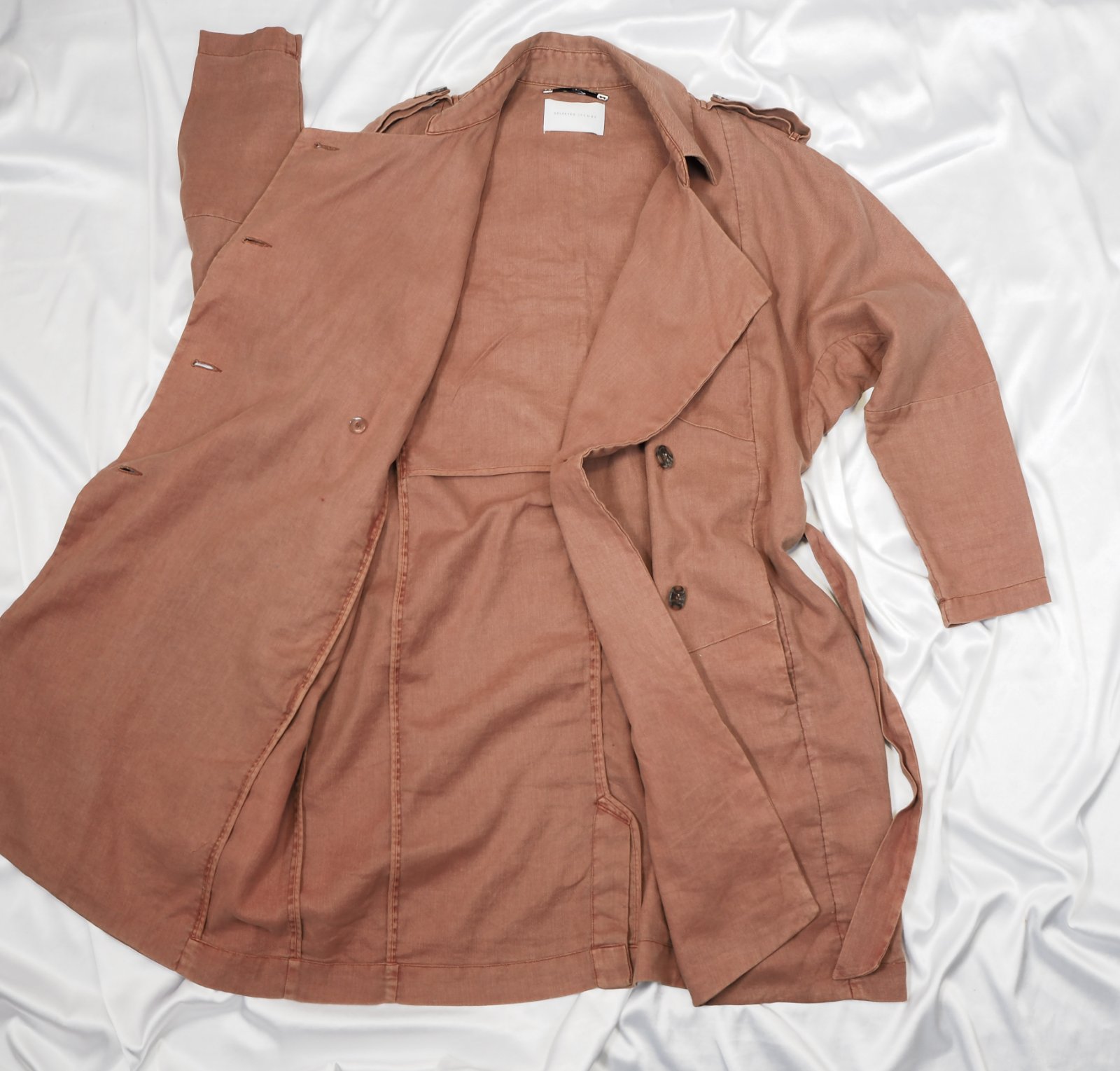 Kvalitný hnedoškoricový plášť bez podšívky, netopieri rukáv, materiál