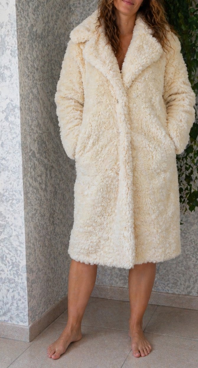 umely kožuch kremovo/bledo žltej farby,s podšivkou. veš b54