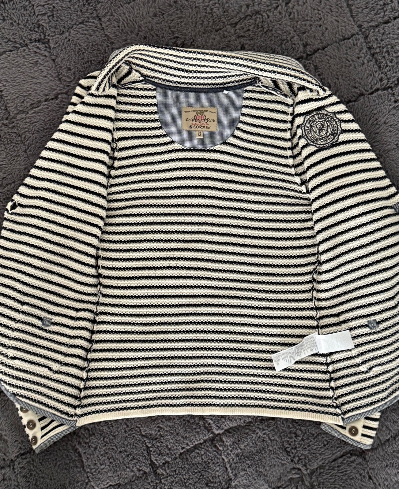 Krásne Bielo-modré svetríkové sako Soccx. Velkost písaná M, sedí S-M. Bežné známky nosenia, bez poškodenia.