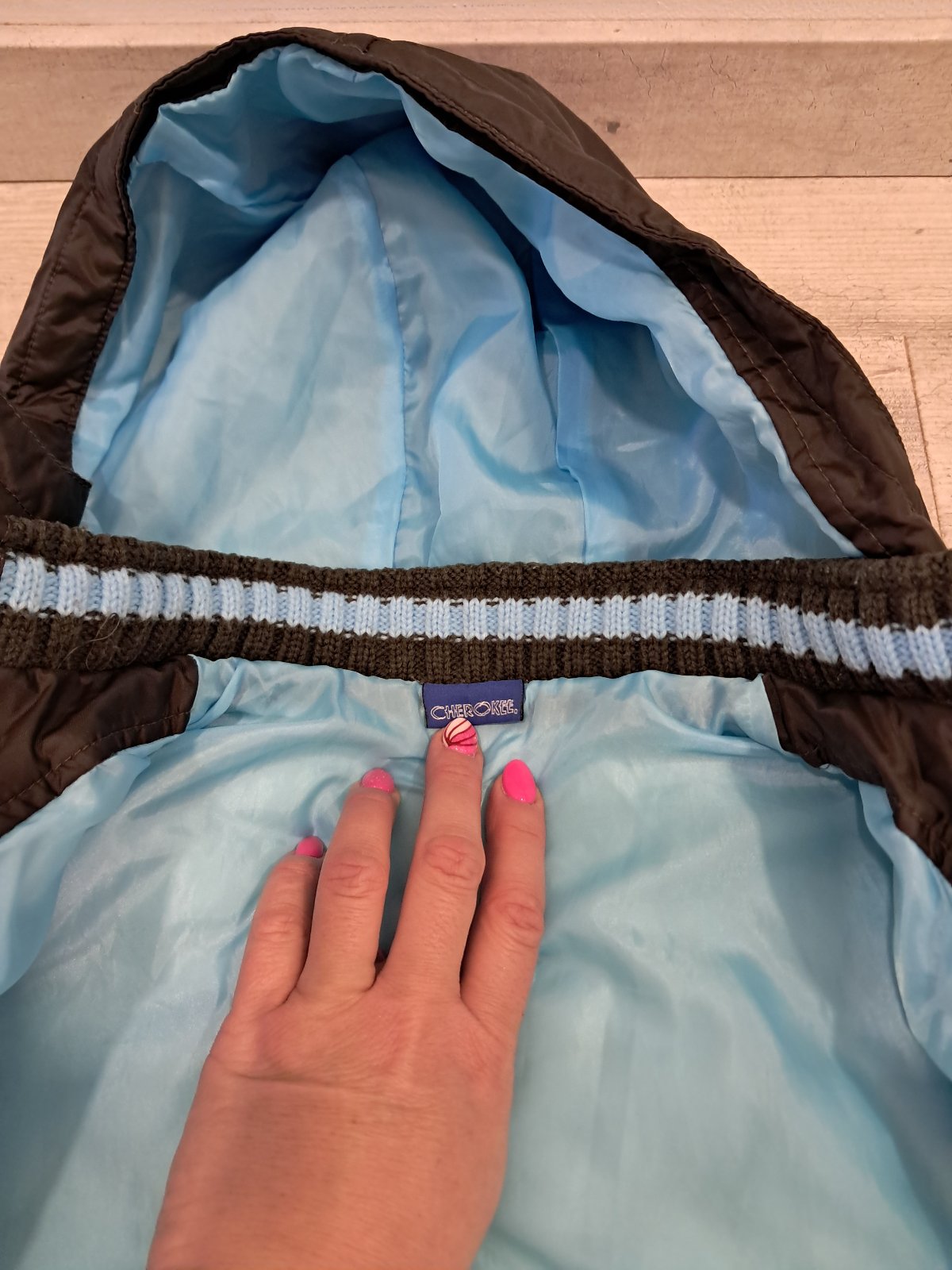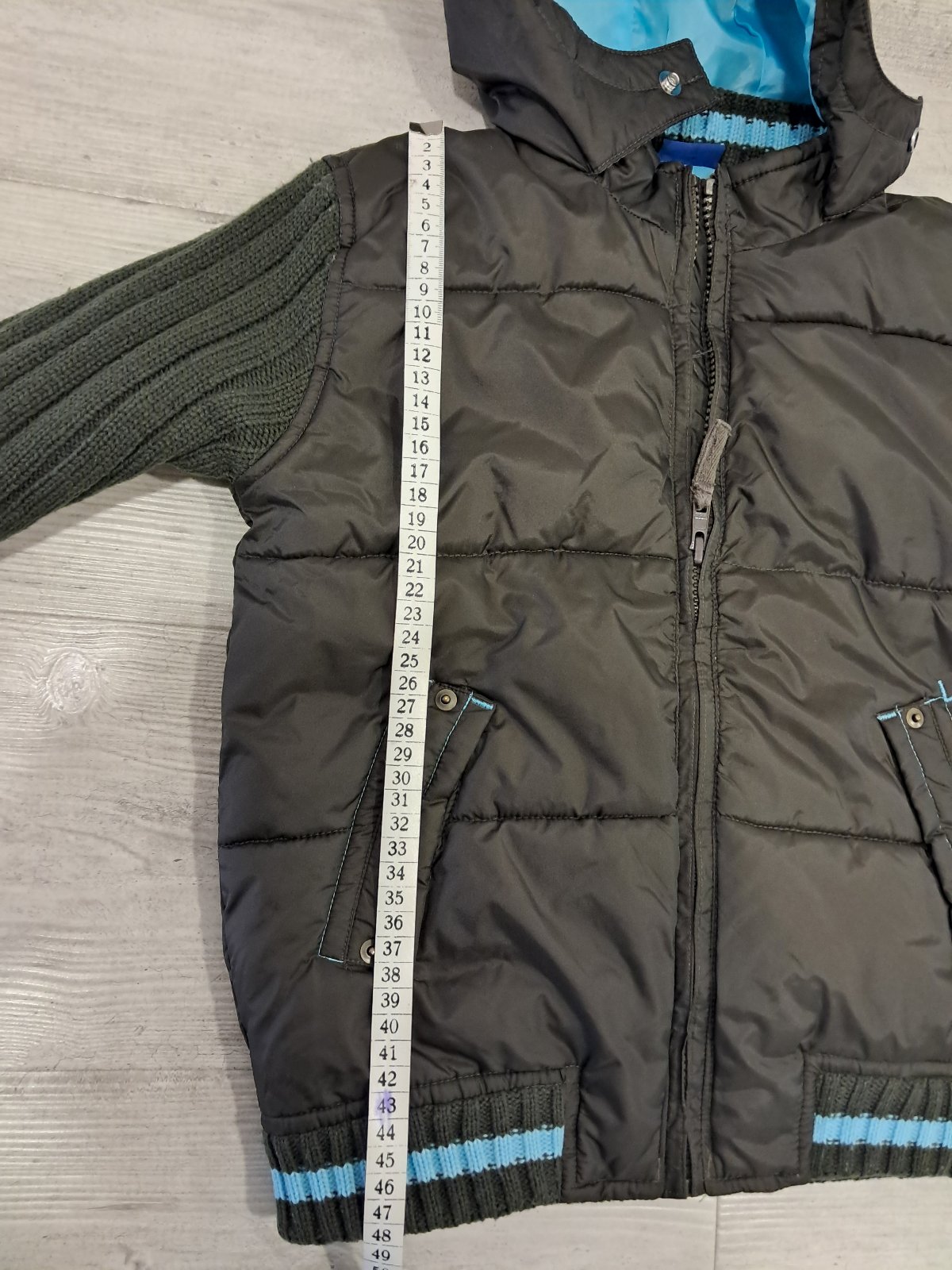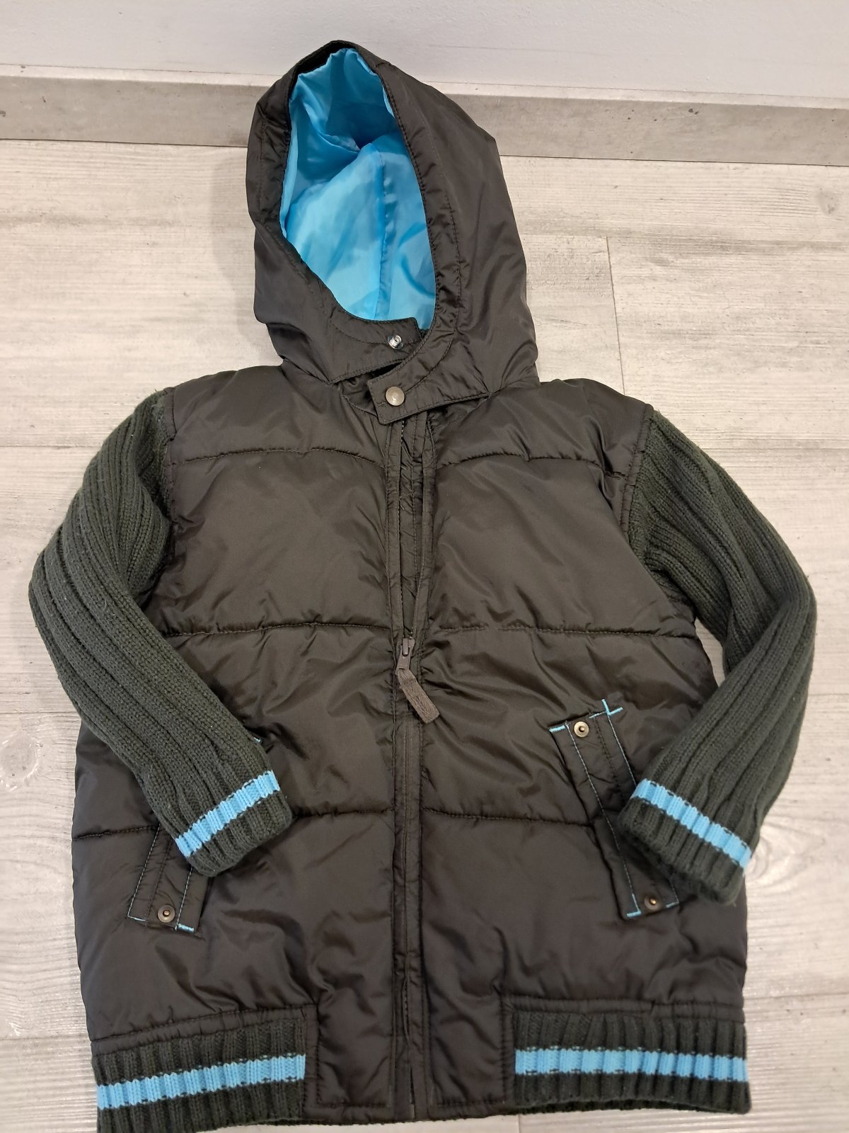Predám tmavohnedú zimnú bundu, veľ. 116, pre 5-6 rokov, zn. CHEROKEE, s nednímateľnou kapucou, s rukávmi z pleteniny. Pekný nosený stav.