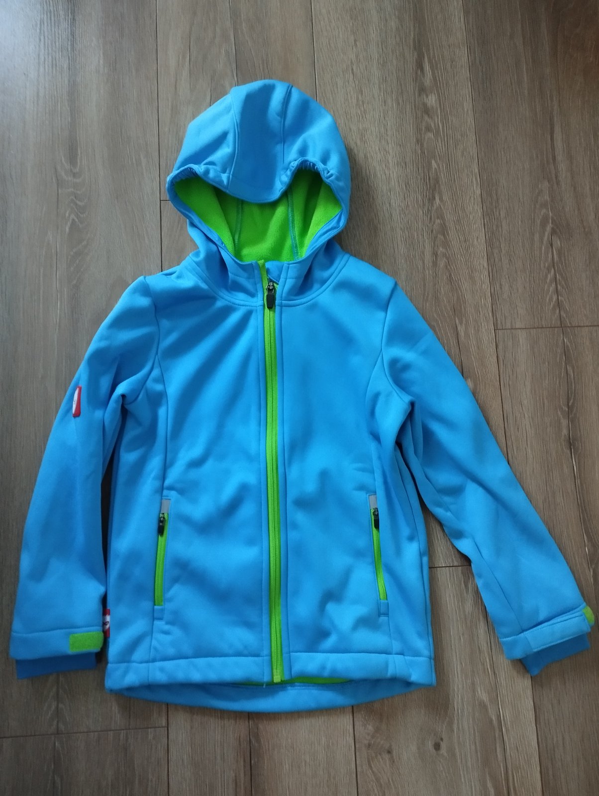Softshellova bunda,velkost 110/116. Krasne ziarive farby. Top stav, nosena prilezitostne.