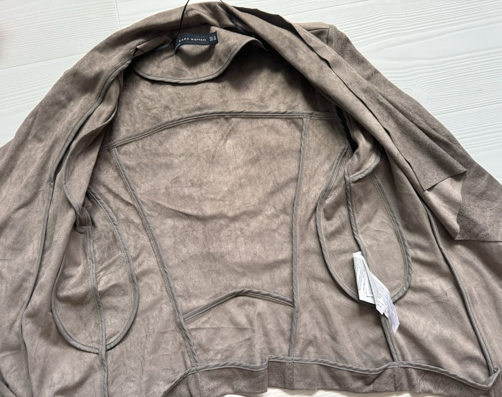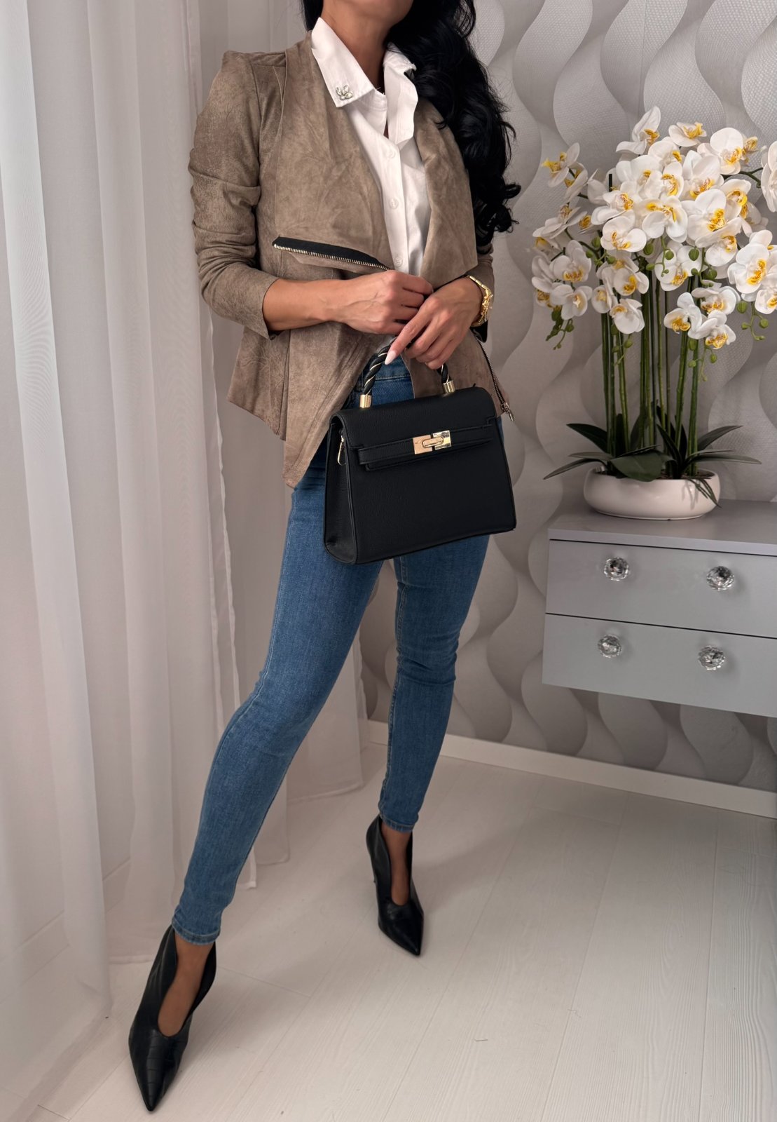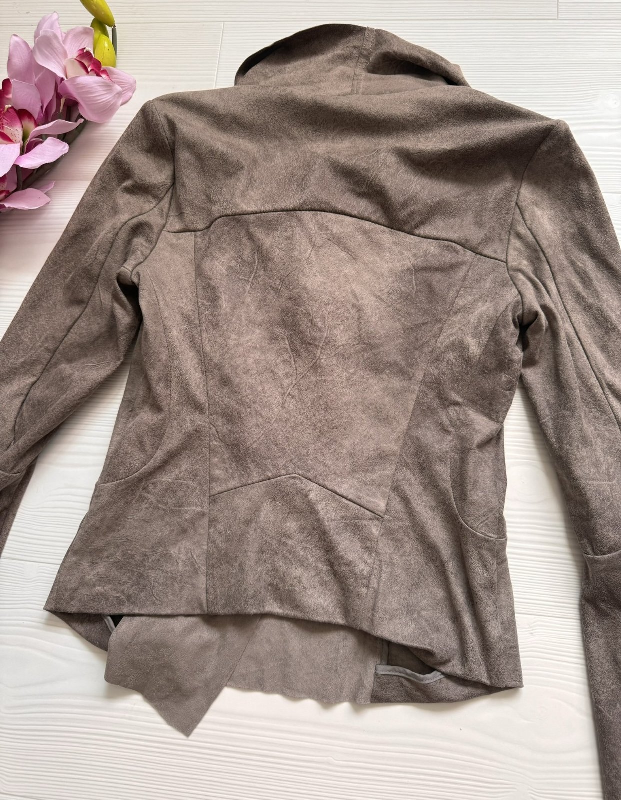Prechodná semišová bunda na viacero spôsobov nosenia.