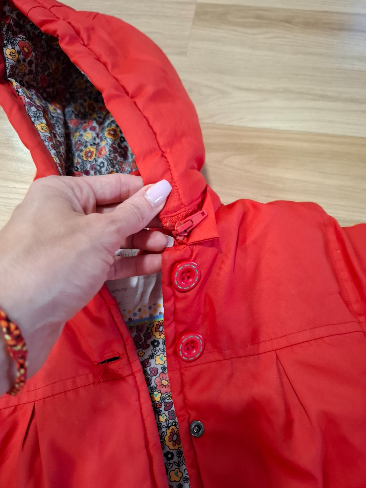 Krasna bunda, zapinanie na gombiky. Odnimatelna kapucňa.