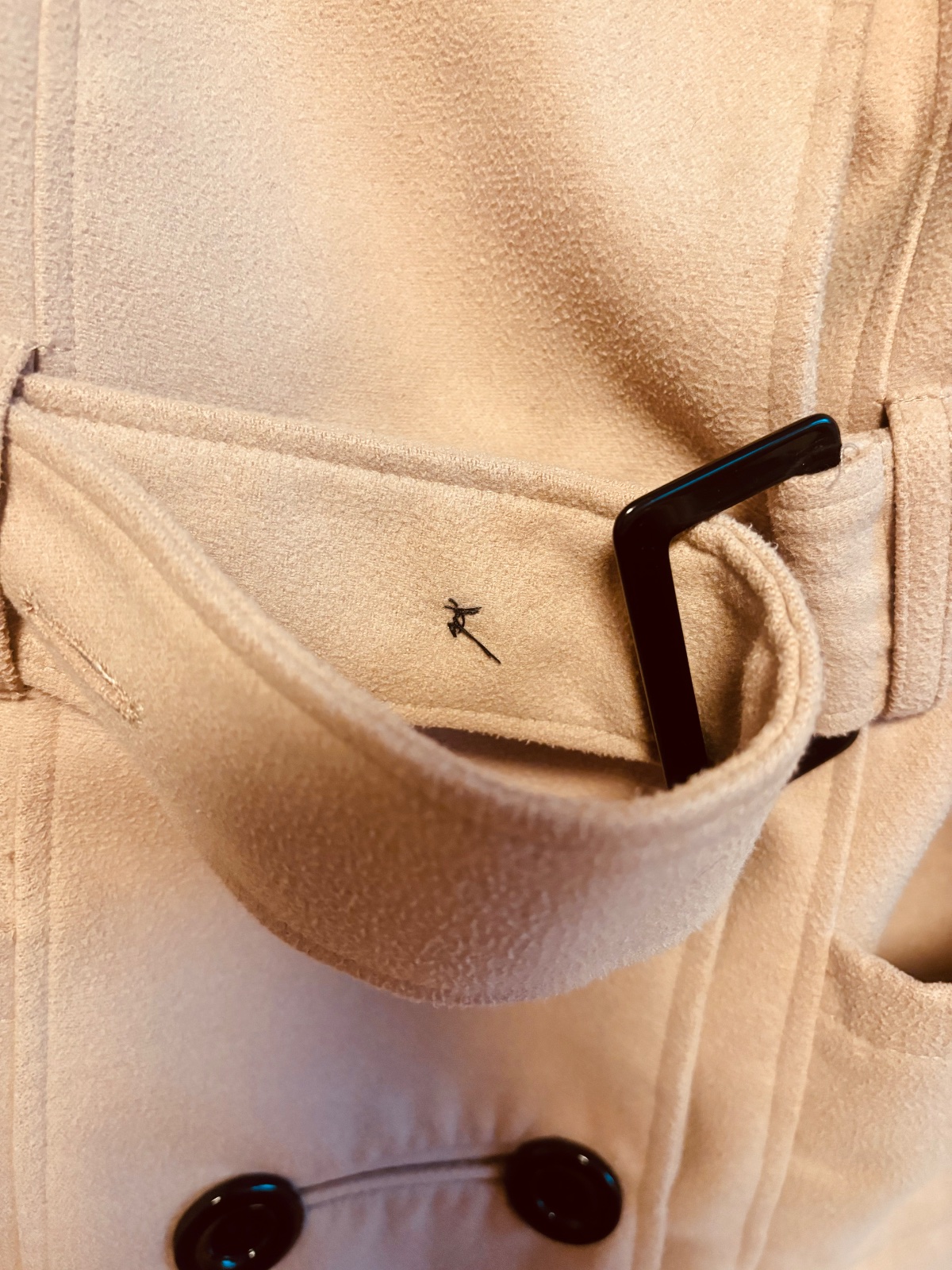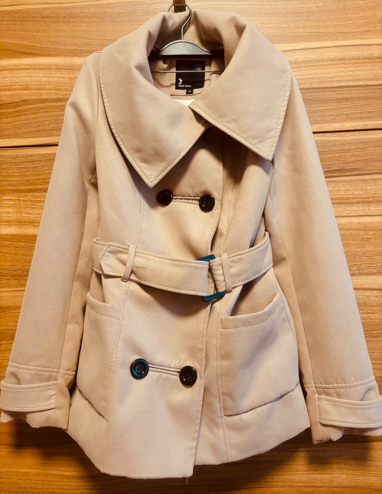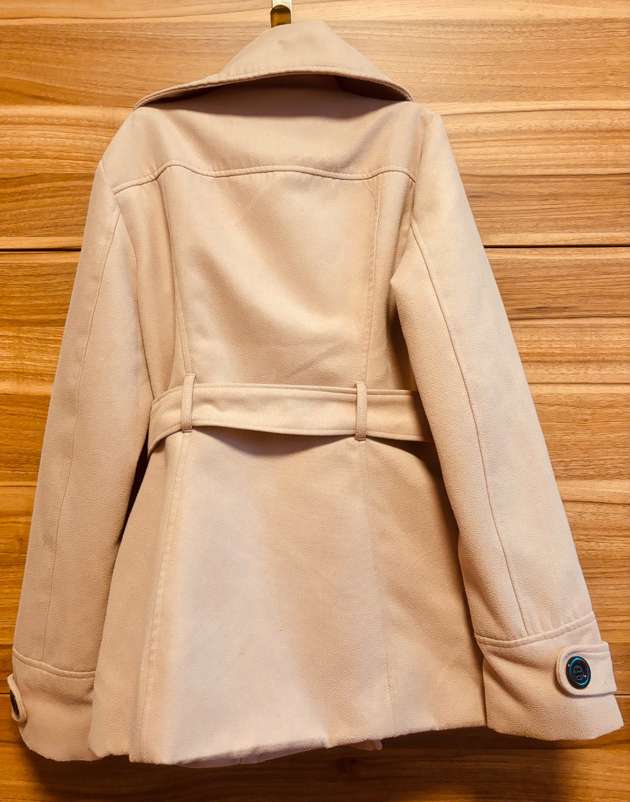 krásny kabát ťavej farby, veľmi pekne spracovanie, hlboké vrecká, veľké gombíky, golier sa dá vyhrnúť a bude maxi (vnútri pri krku je gombík). jediná vada je že na opasku chyba gombík -náhradný bohužiaľ nemám. je mi malý a nemám naň miesto inak by som ho nepredávala. veľkostne sedí na s/m, menšie m.